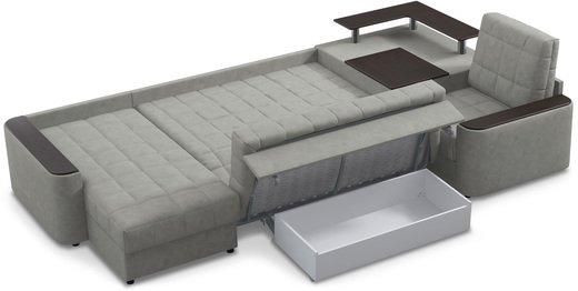 - Оригинальный декор подлокотников выполняет функцию практичных столешниц.