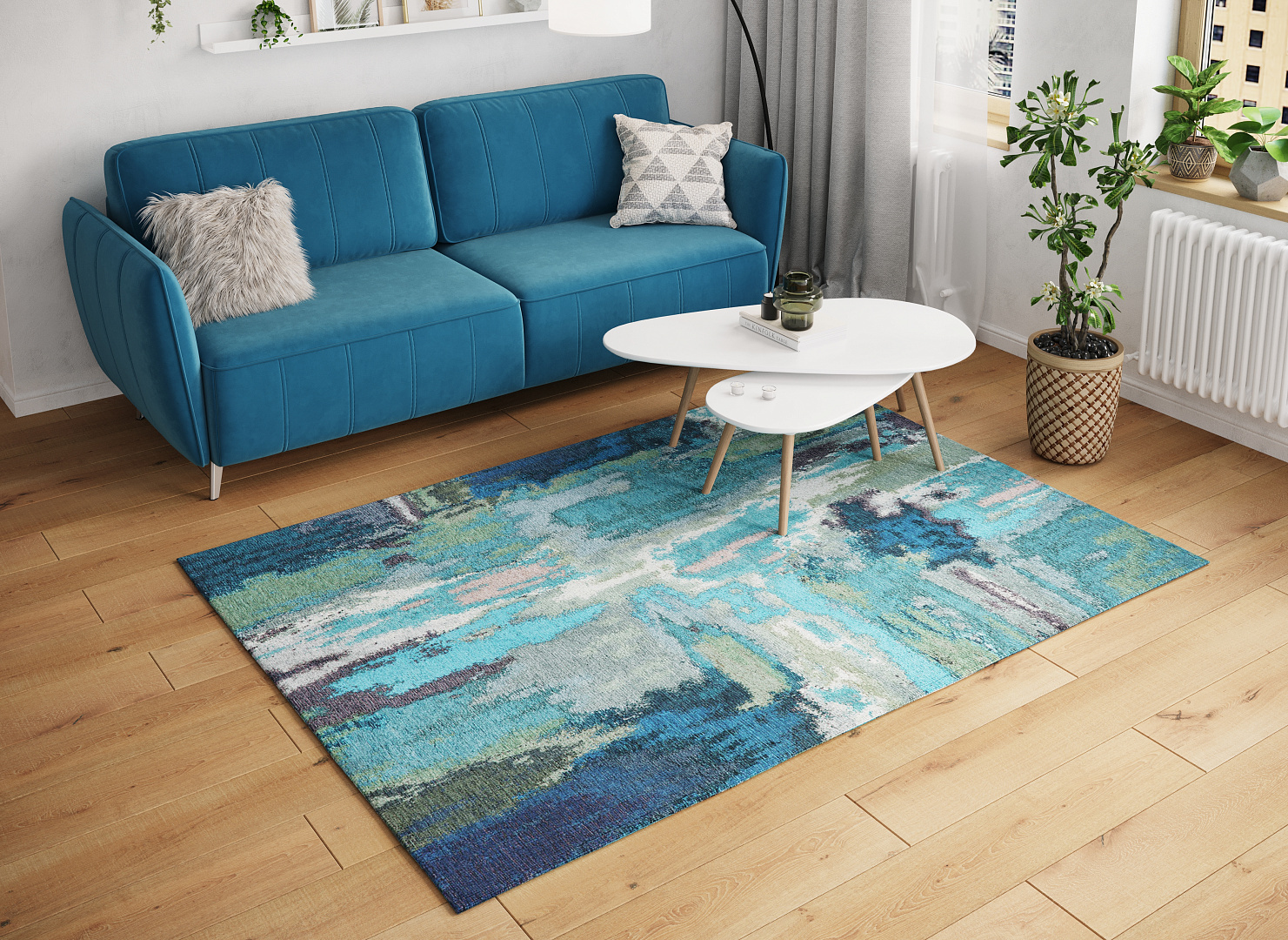 Ковёр тканый, безворсовый, размер 160х230 смСовременная интерпретация узора MOON FAMILY 4055 удивительно близка цветовой палитре художников-импрессионистов. Традиционный синий символизирует небо, оттенки зеленого – всеобъемлющую витальность. Гармоничное смешение красок намеренно состаренной поверхности ковра – часть аутентичного восточного обаяния.