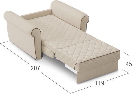 • При минимальных габаритах кресло обладает отличным спальным местом.