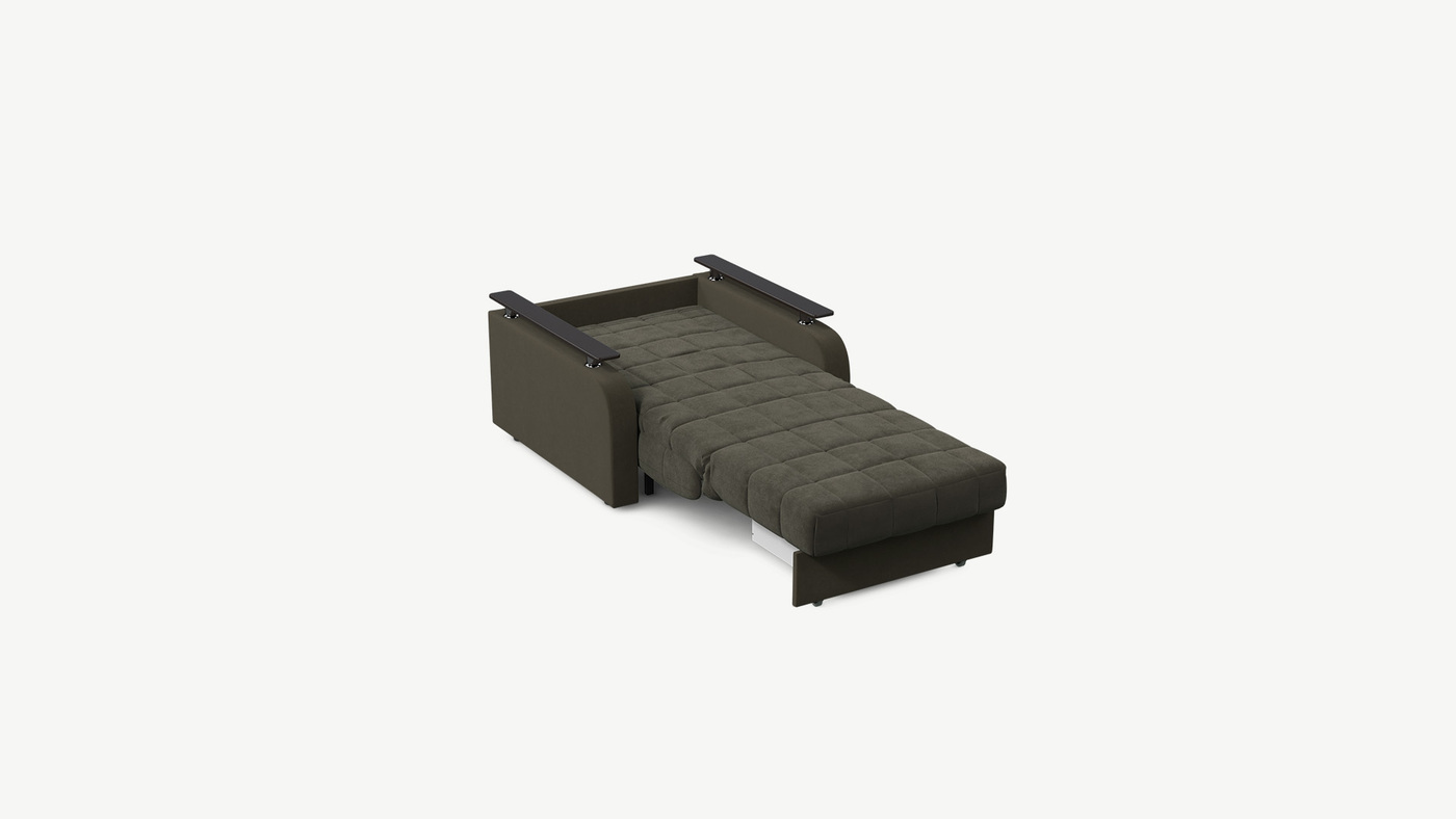 Кресло-кровать с декоромКресло-кровать MOON FAMILY 044 украшено уютной стежкой в квадрат. Гладкая фактура подлокотников и стежка — эффектный визуальный контраст, добавляющий дизайну привлекательности. Проверенный временем дизайн с приподнятой над уровнем подлокотников столешницей создает пространство, в котором хочется проводить как можно больше времени.