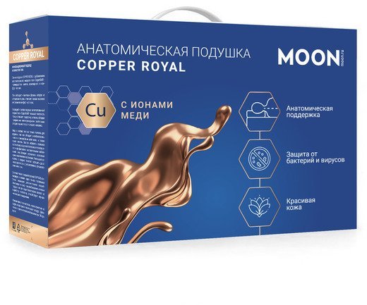 Подушка MOON FAMILY COPPER ROYAL это инновационный, по истине королевский подход к качеству сна. Название подушки дословно переводится как Королевская Медь. Пока вы отдыхаете, MOON FAMILY COPPER ROYAL с королевскими почестями заботится о вашем комфорте, здоровье и красоте, ничто не останется без внимания. Комфортный, здоровый сон, красивая свежая кожа, отдохнувший внешний вид, лёгкое пробуждение и хорошее настроение на весь день — обо все этом позаботится MOON FAMILY COPPER ROYAL.