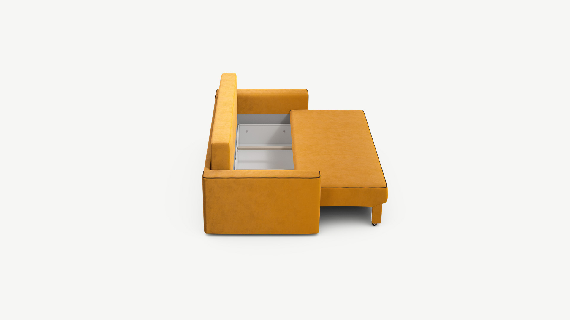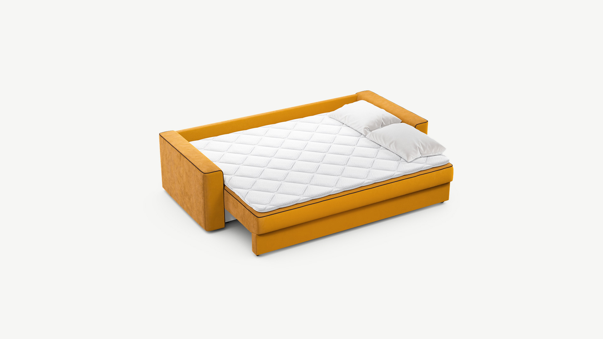 Достоинства: Красивый цвет, удобное спальное место, есть короб для хранения