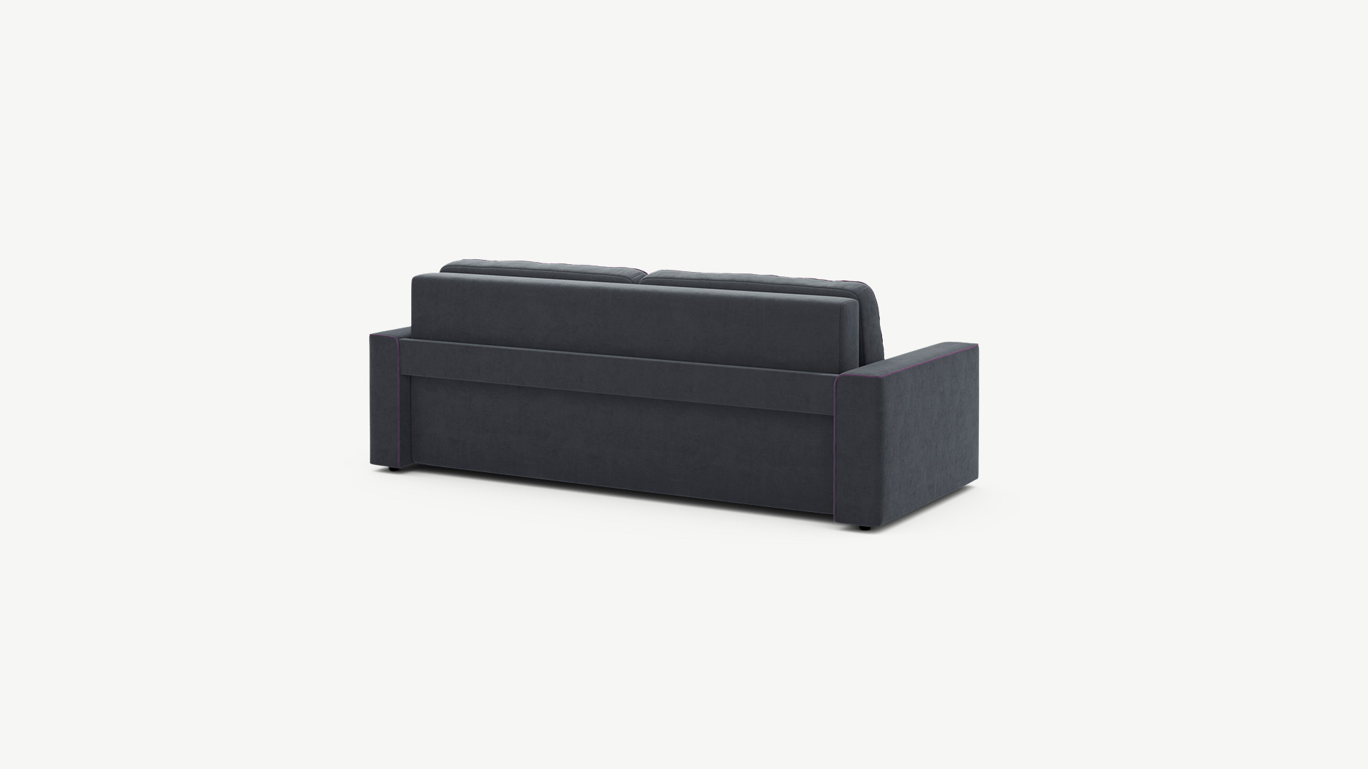Спинка, выполненная в обивочной ткани, позволяет ставить диван в центре комнаты и зонировать пространство.