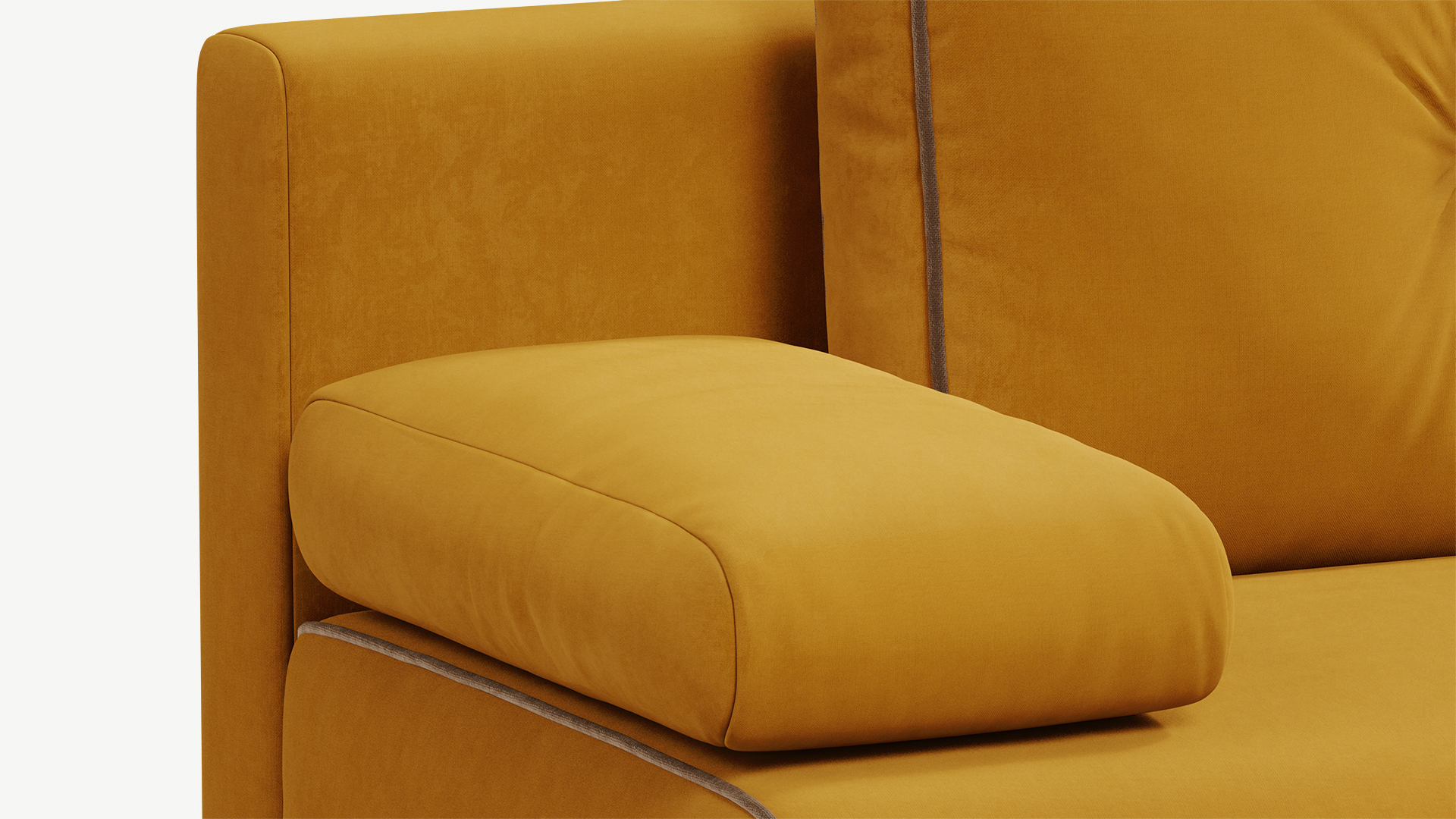 Контрастный кант, украшающий «срезы» на корпусе и приспинных подушках MOON FAMILY 043, лишь усиливает визуальную идентичность элементов, поддерживая эффект наборности.