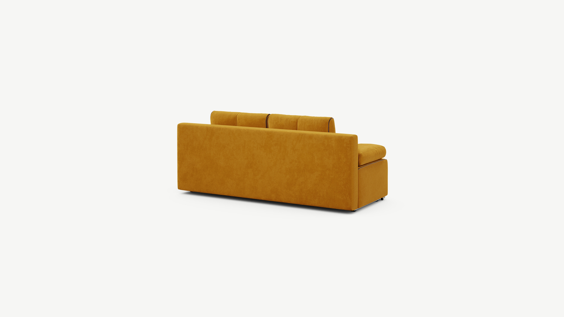 Следуя восточным традициям, диван снабжен едва заметными опорами, благодаря чему максимально близко воссоздает впечатление сложенных на полу подушек.