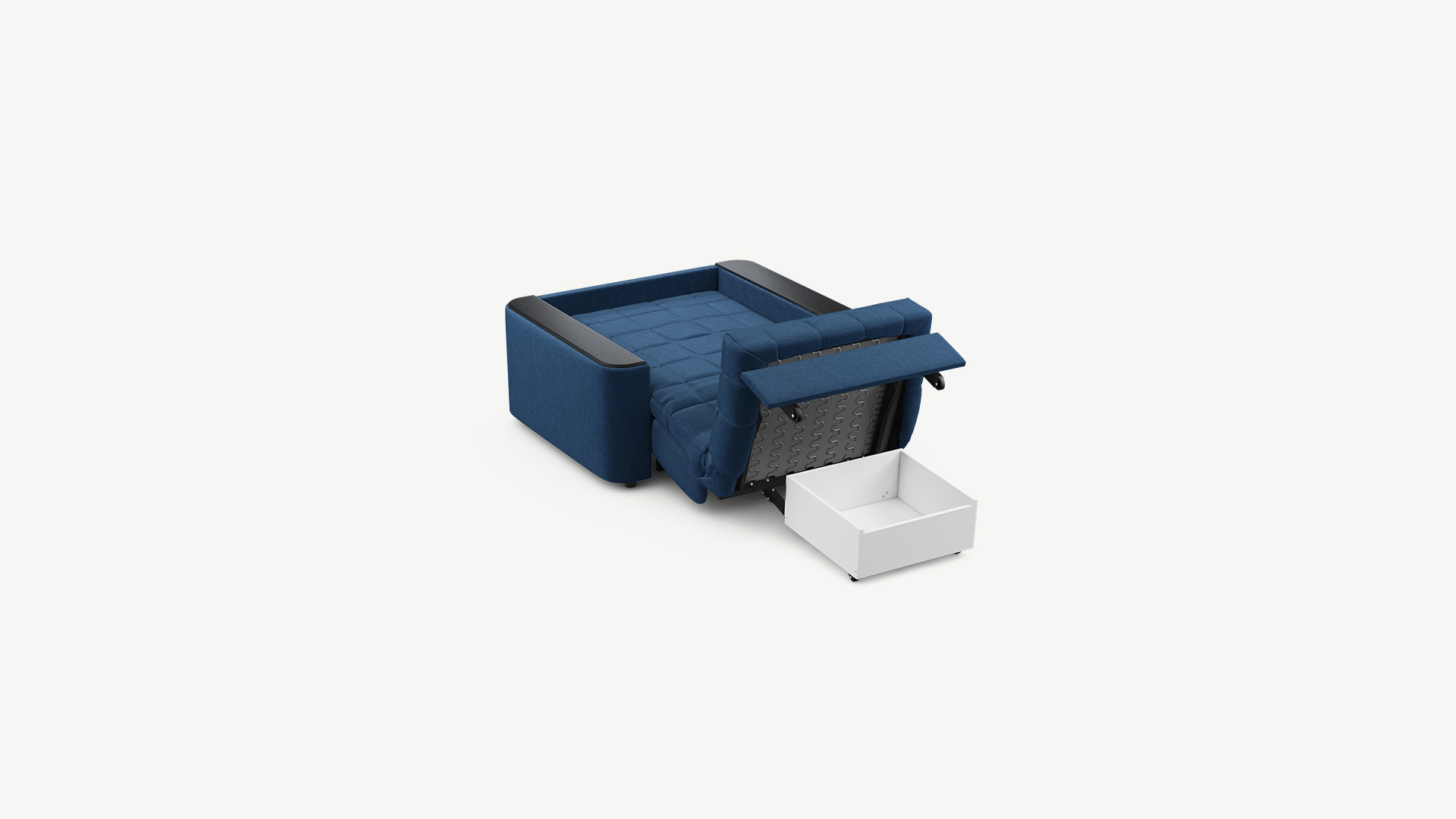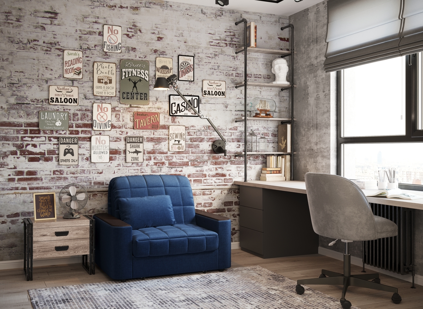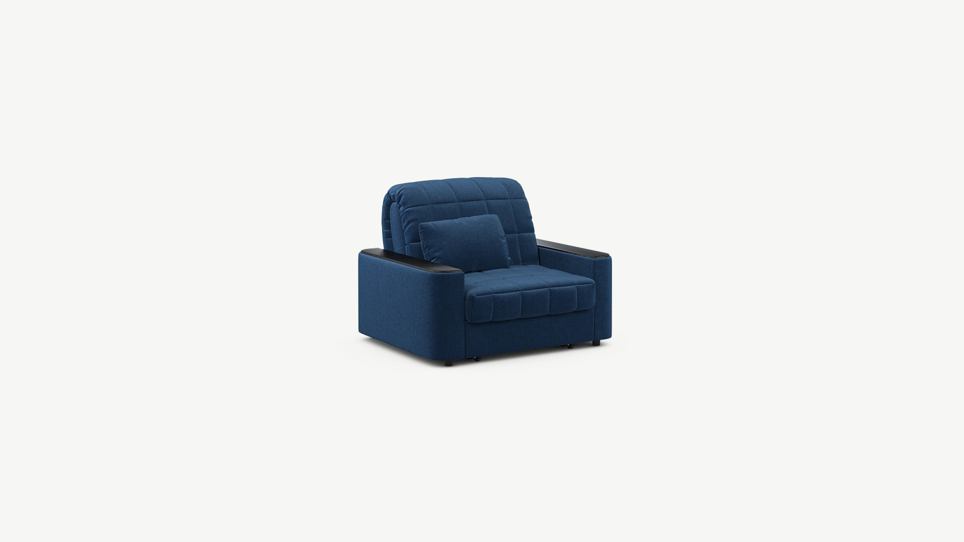 Объемные подлокотники — стильная деталь, отлично вписывающая кресло-кровать в интерьер современной городской квартиры.