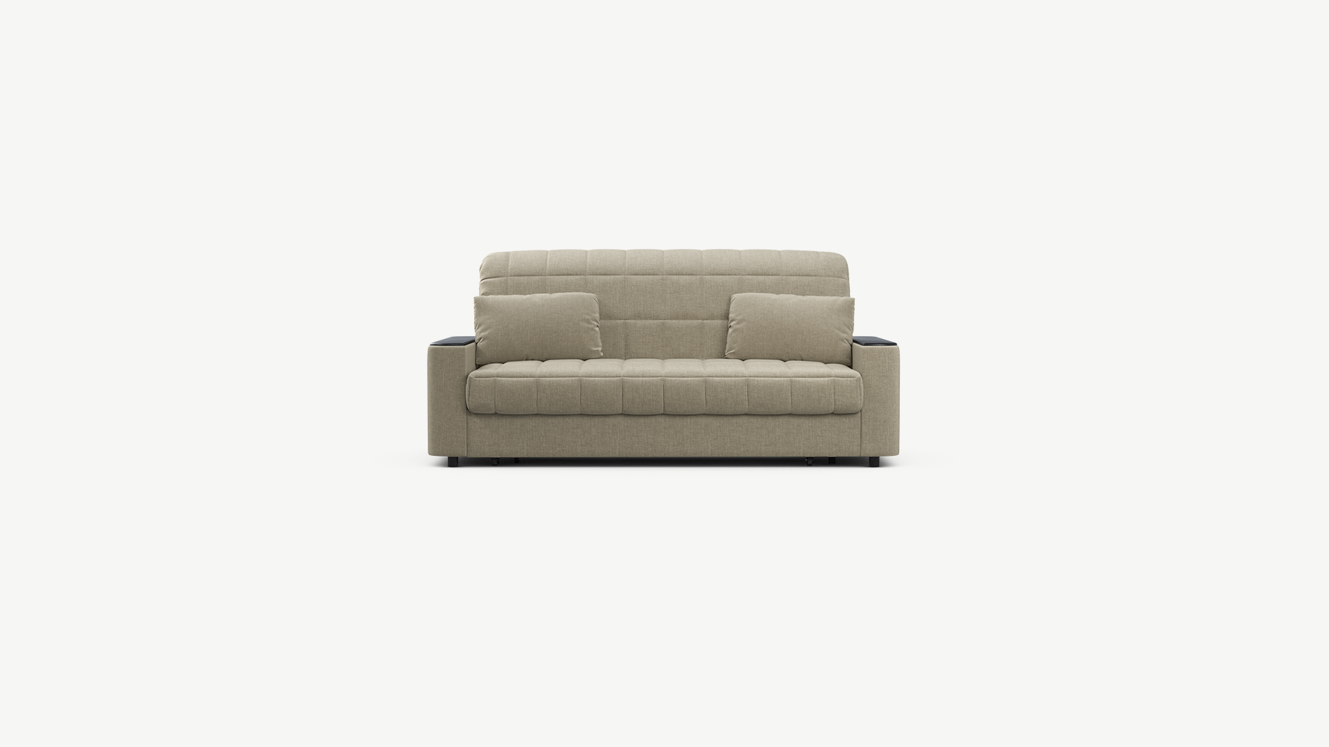 Хороший универсальный диван, средний по удобству для сидения, но хороший для сна. Идеальное решение для гостевой комнаты.