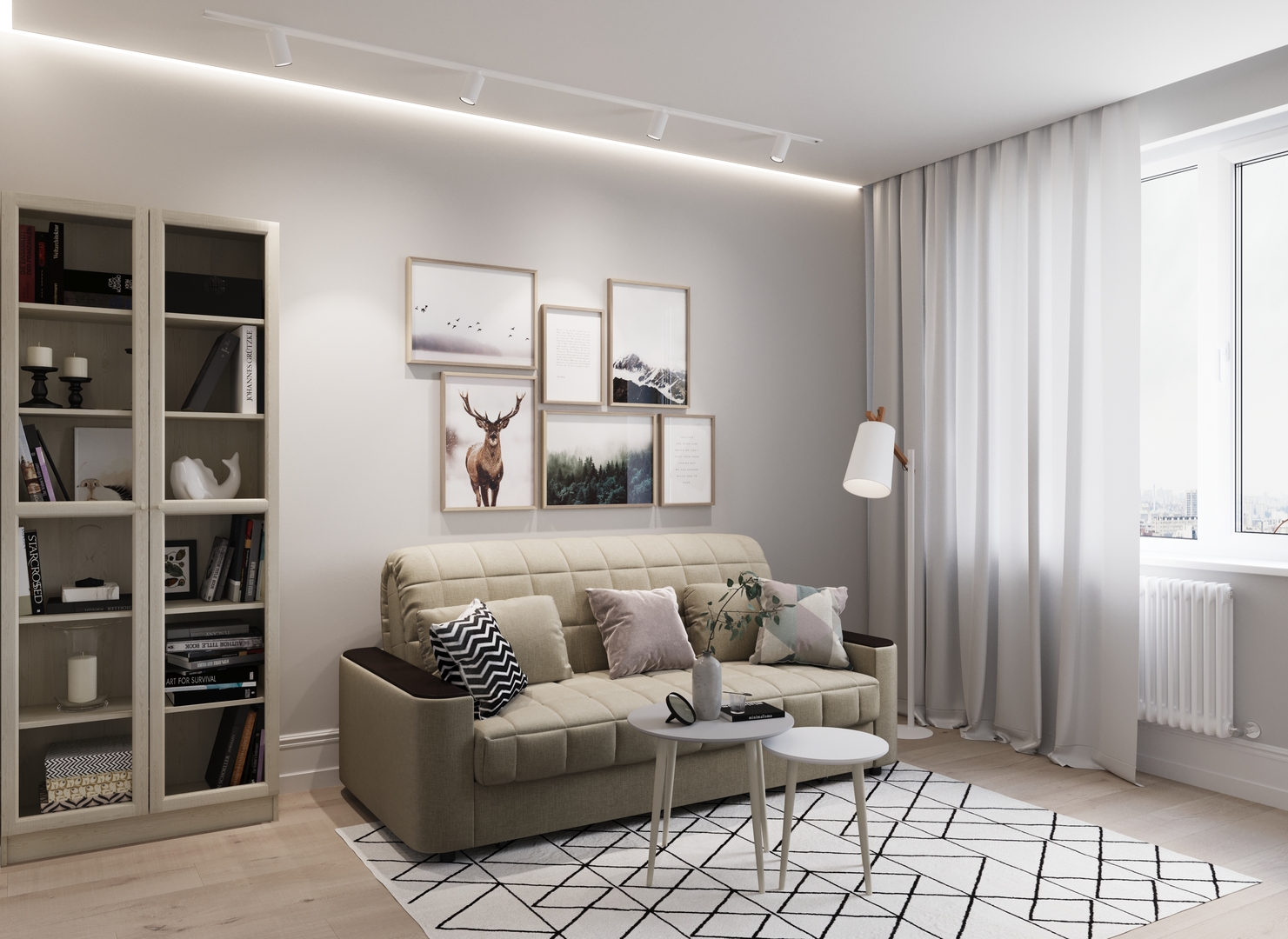Спинка, выполненная в обивочной ткани, позволяет ставить диван в центре комнаты и зонировать пространство.
