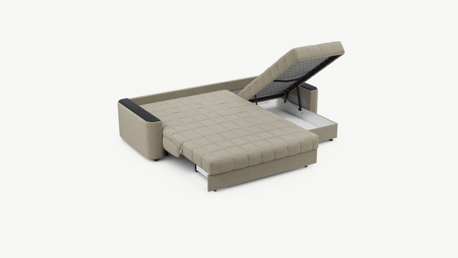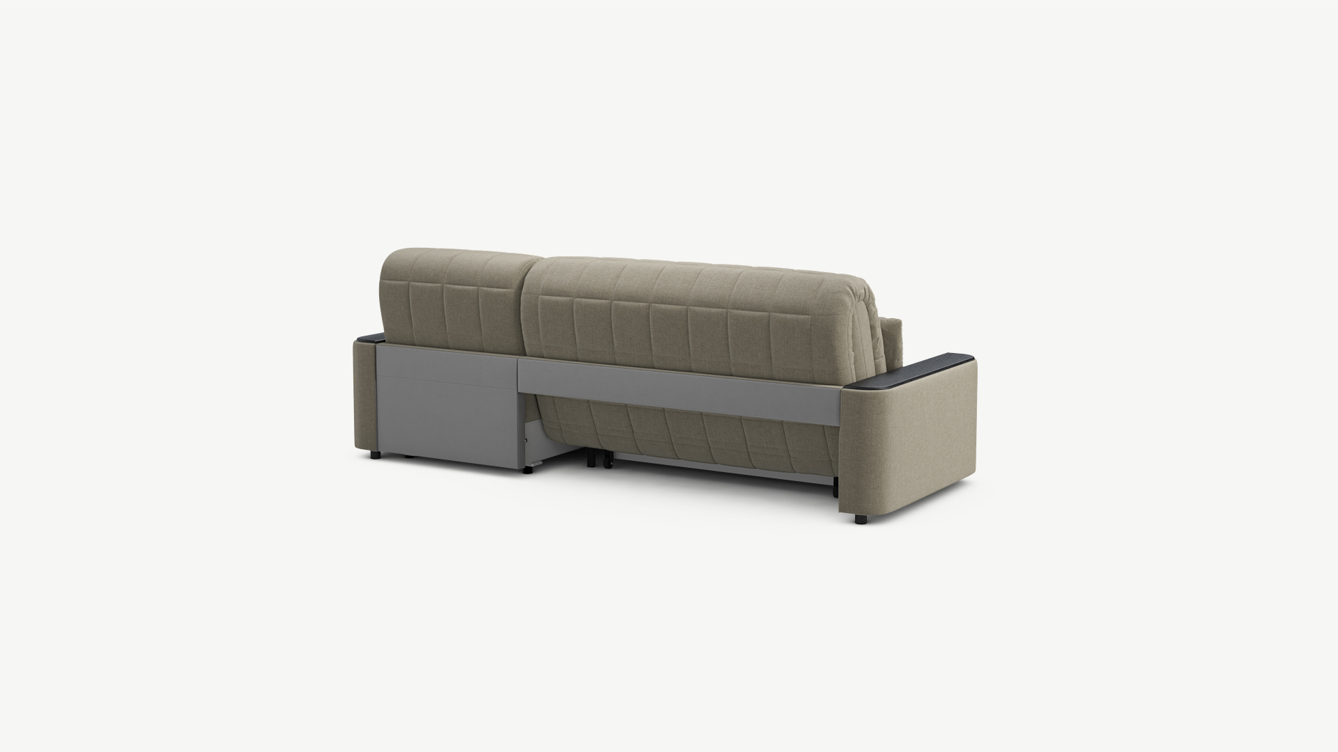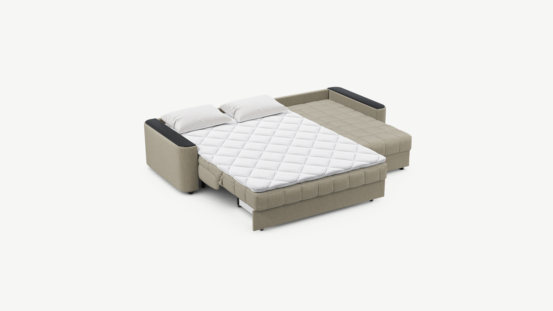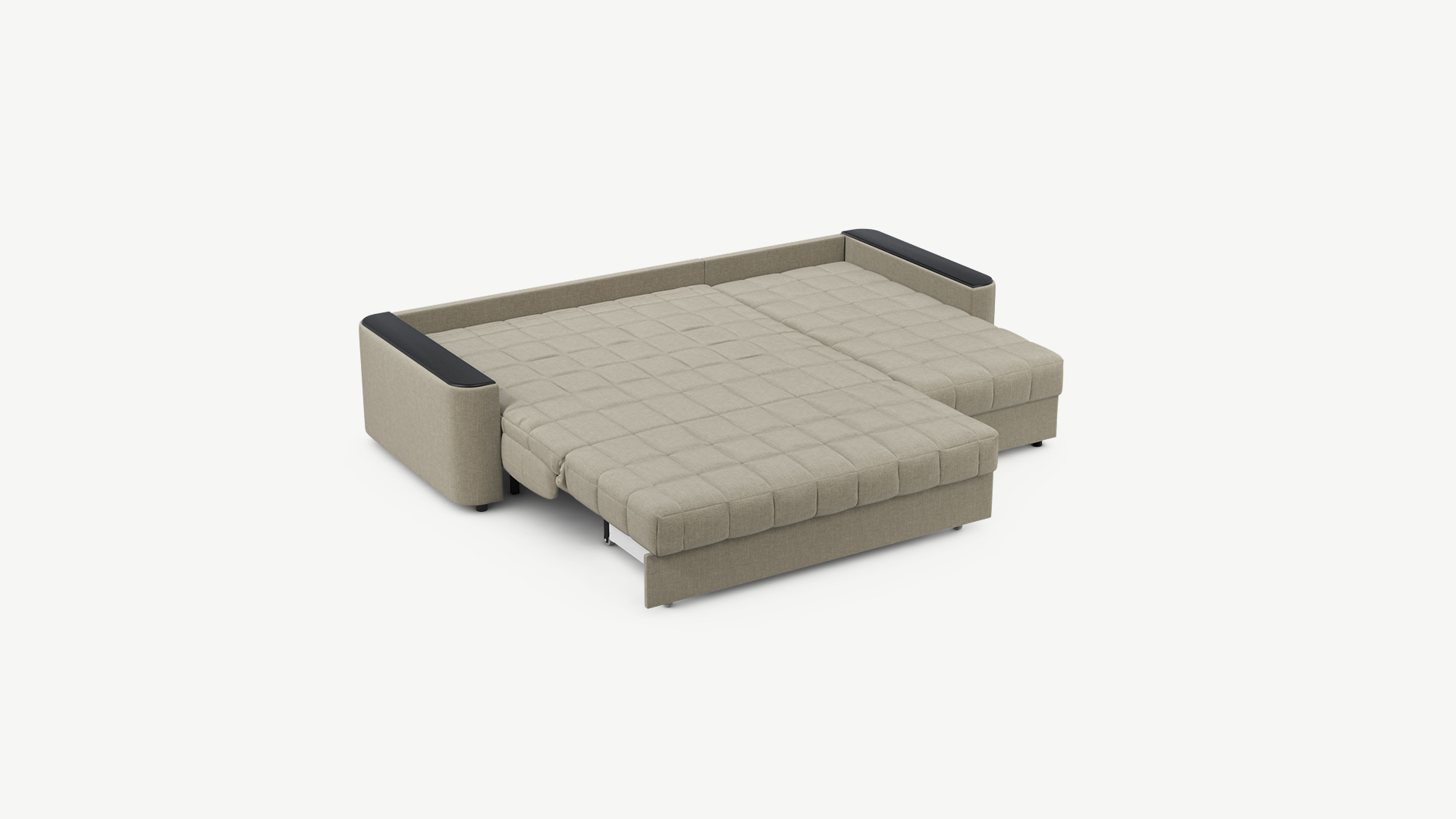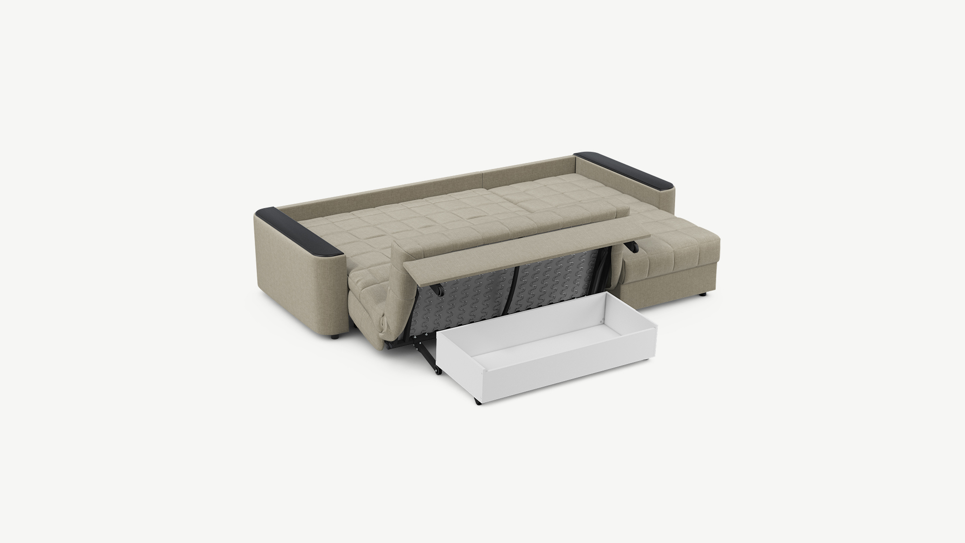 Оттоманка обеспечивает дополнительное пространство для отдыха, благодаря которому Вы можете располагаться с максимальным комфортом, вытянув ноги. Под данной секцией расположен вместительный бельевой короб.