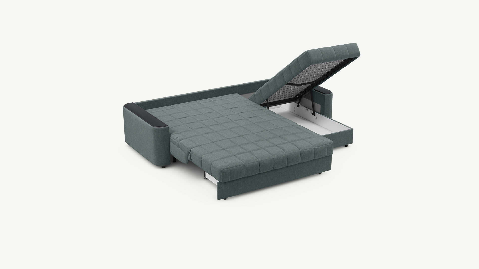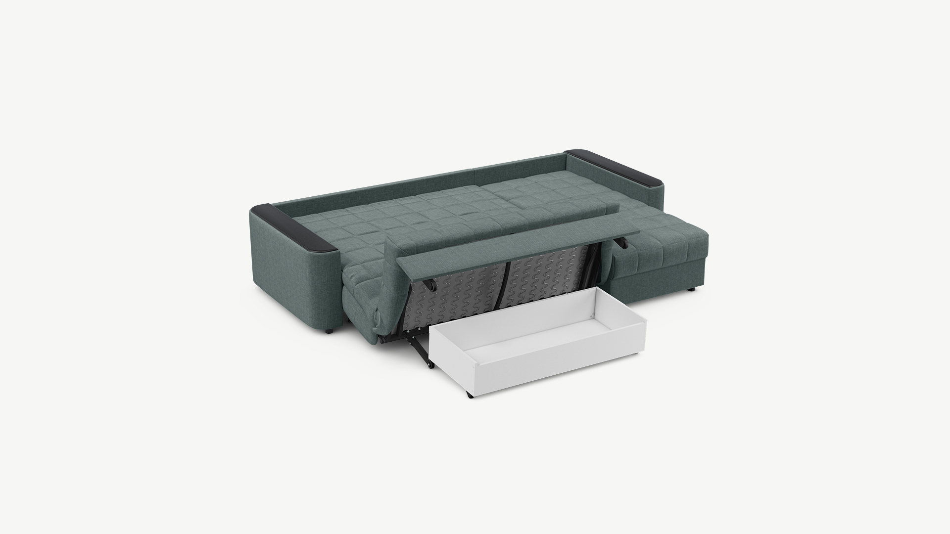 Оттоманка обеспечивает дополнительное пространство для отдыха, благодаря которому Вы можете располагаться с максимальным комфортом, вытянув ноги. Под данной секцией расположен вместительный бельевой короб.