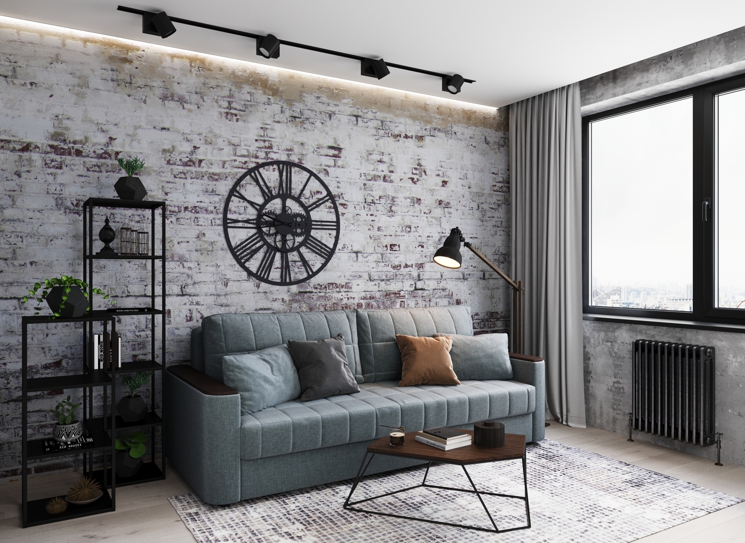 Объемные подлокотники — стильная деталь, отлично вписывающая диван в интерьер современной городской квартиры.