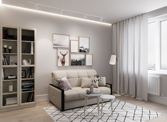 Спинка, выполненная в обивочной ткани, позволяет ставить диван в центре комнаты и зонировать пространство.