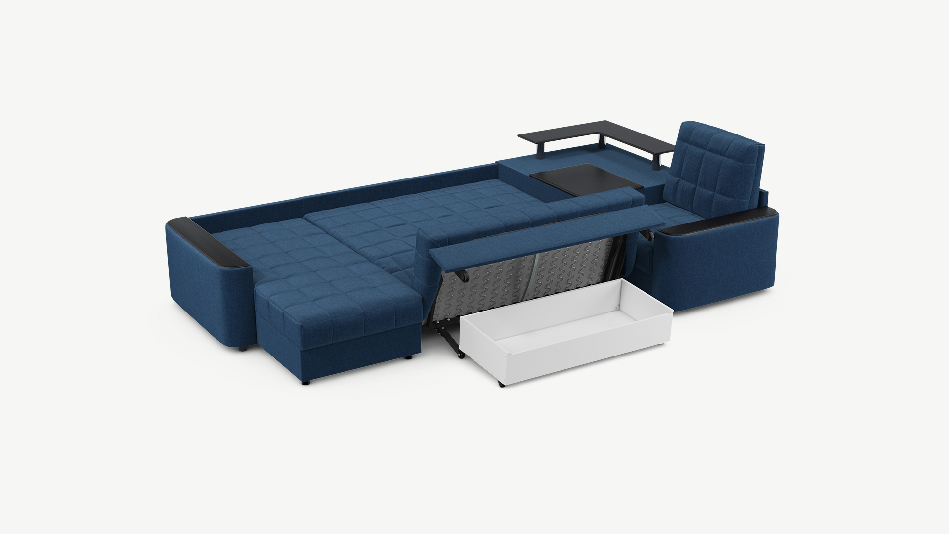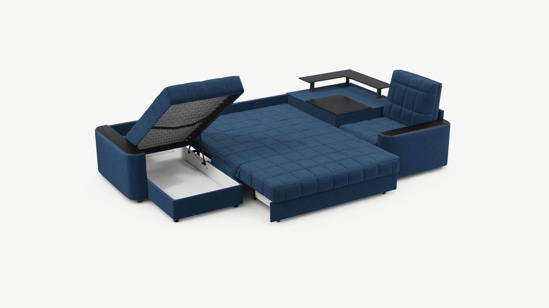 Выбирая угловой диван со столиком, Вы сможете проводить время с максимальным комфортом, многократно повысив функциональность дивана. Все дело в том, что под столешницей модуля расположена вместительная емкость для хранения. Кроме того, поверхность столика — идеальное пространство для чаепития в приятной компании, а также место для множества актуальных мелочей — от ноутбука до косметики.