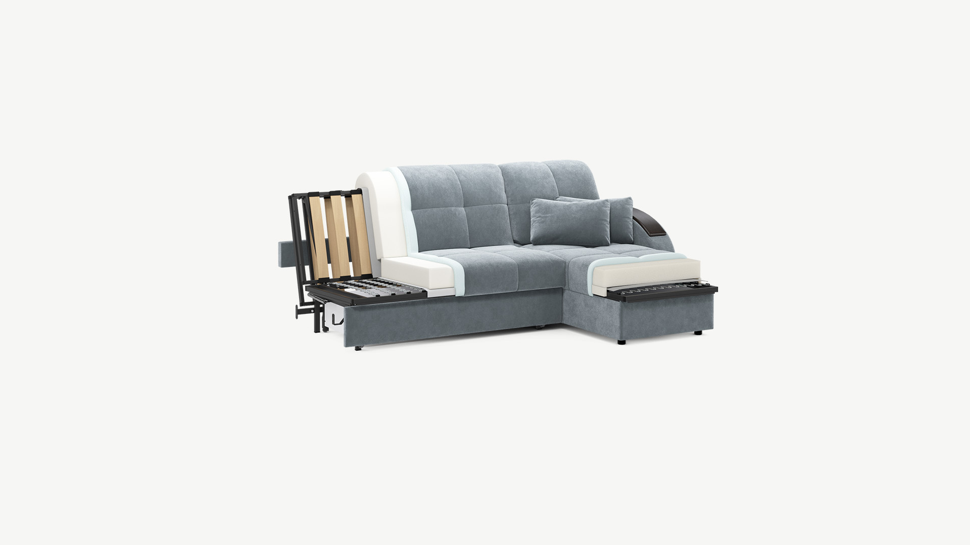Оттоманка обеспечивает дополнительное пространство для отдыха, благодаря которому Вы можете располагаться с максимальным комфортом, вытянув ноги. Под данной секцией расположен вместительный бельевой короб.