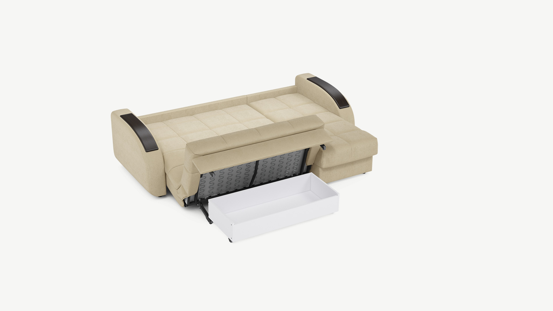 Оттоманка обеспечивает дополнительное пространство для отдыха, благодаря которому Вы можете располагаться с максимальным комфортом, вытянув ноги. Под данной секцией расположен вместительный бельевой короб.