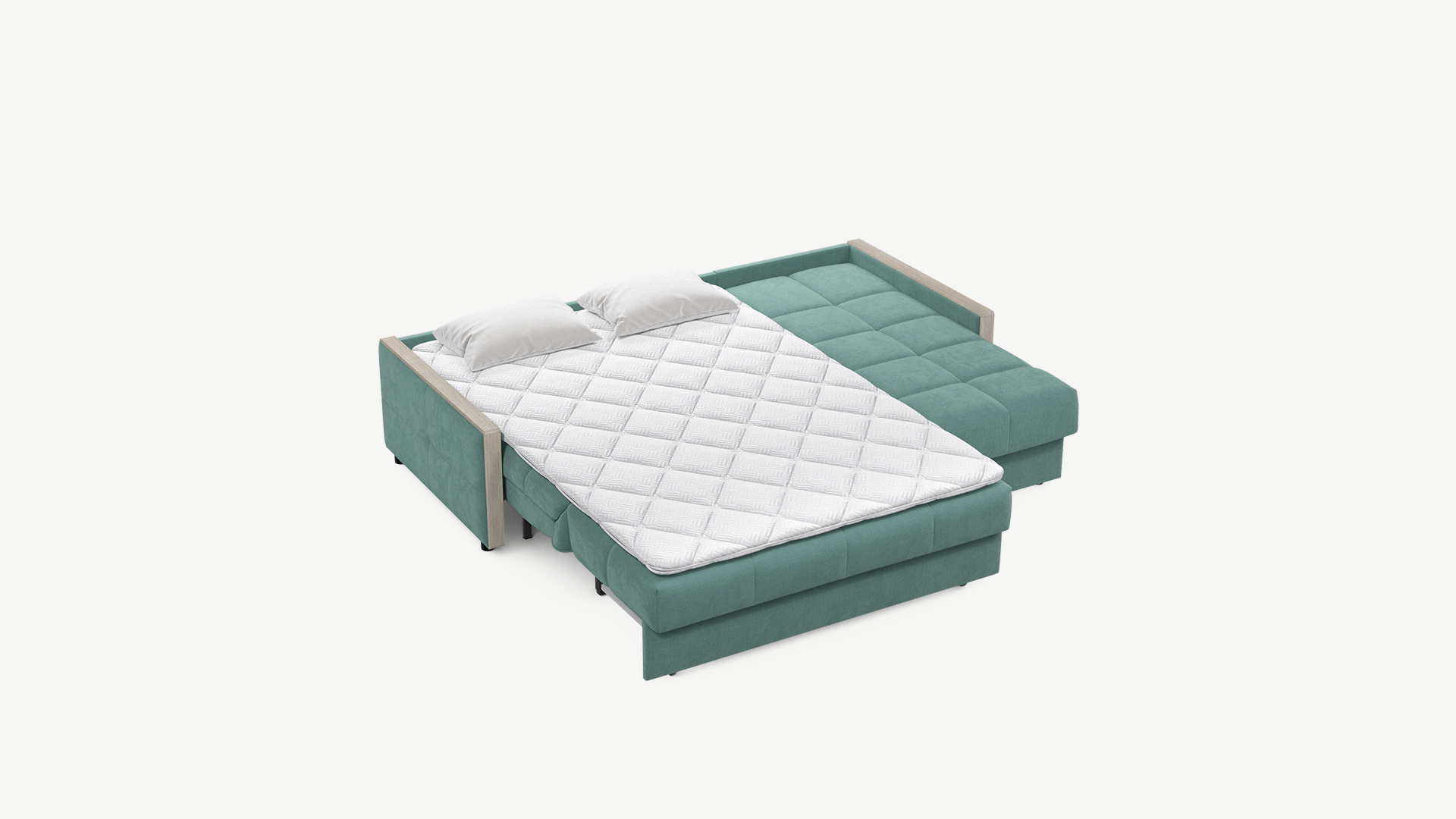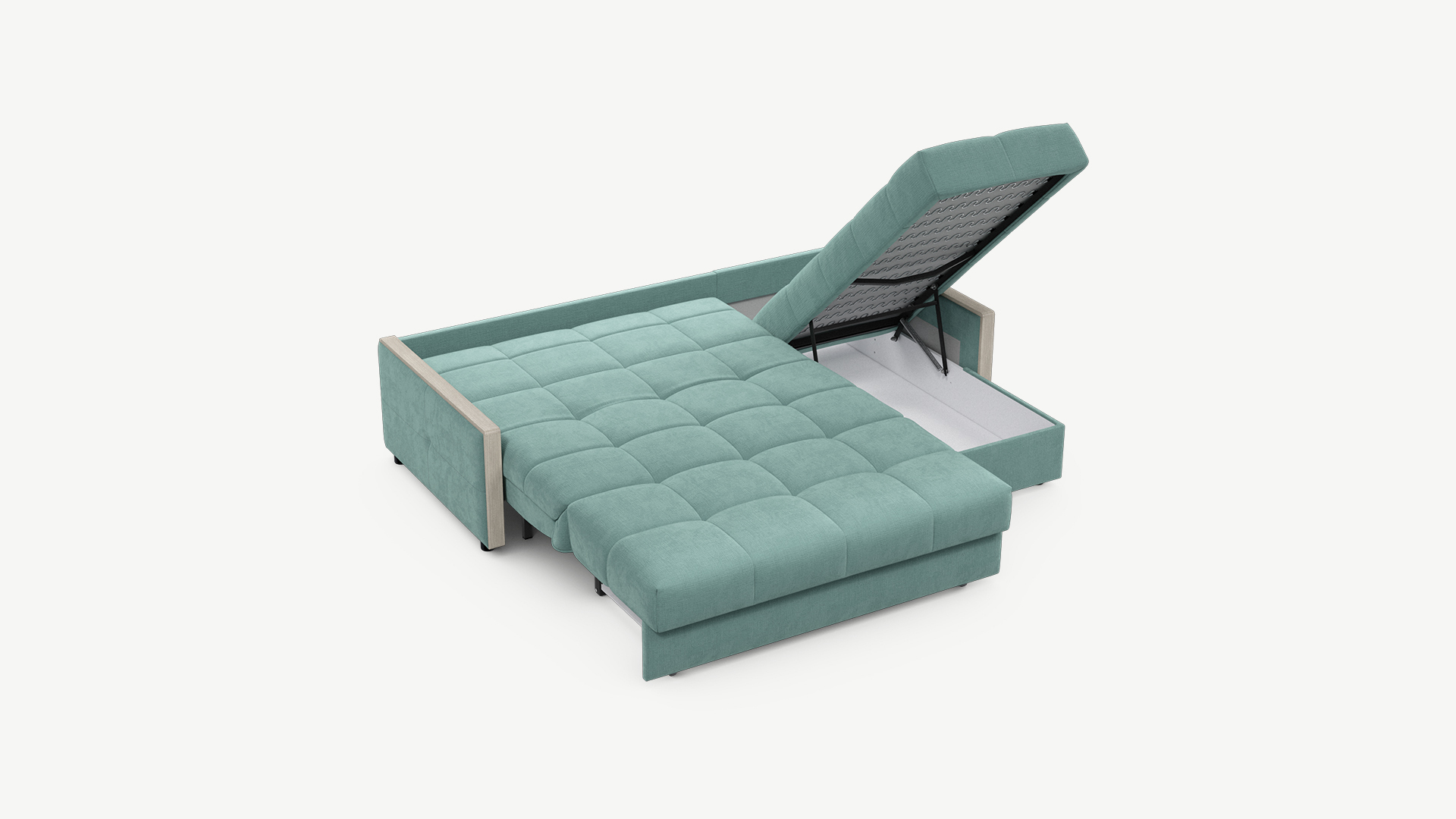 Оттоманка обеспечивает дополнительное пространство для отдыха, благодаря которому Вы можете располагаться с максимальным комфортом, вытянув ноги. Под данной секцией расположен вместительный бельевой короб.