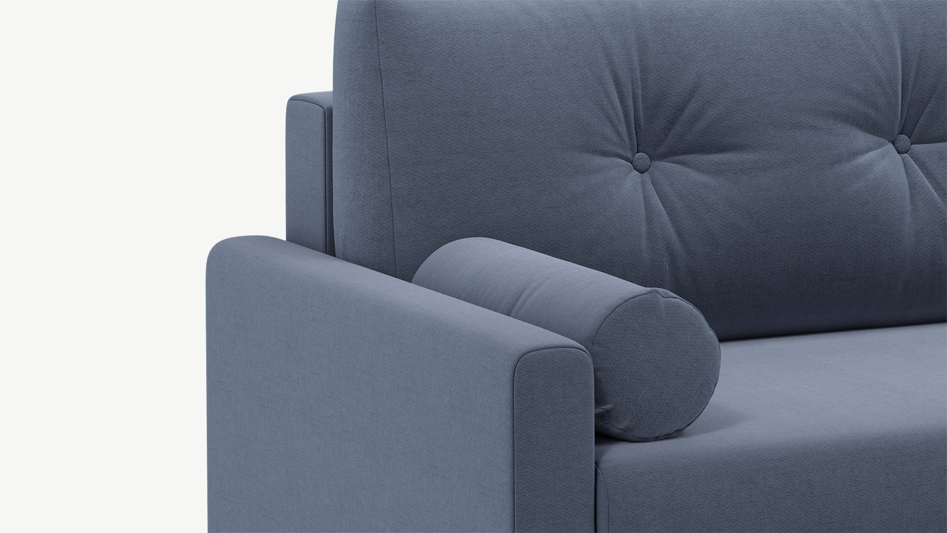 Спинка, выполненная в обивочной ткани, позволяет ставить диван в центре комнаты и зонировать пространство. По замыслу дизайнеров-конструкторов нижняя линия спинки дивана и подлокотники находятся на одном уровне. Уборка становится легкой, так как нет никаких препятствий для прохождения робота-пылесоса.