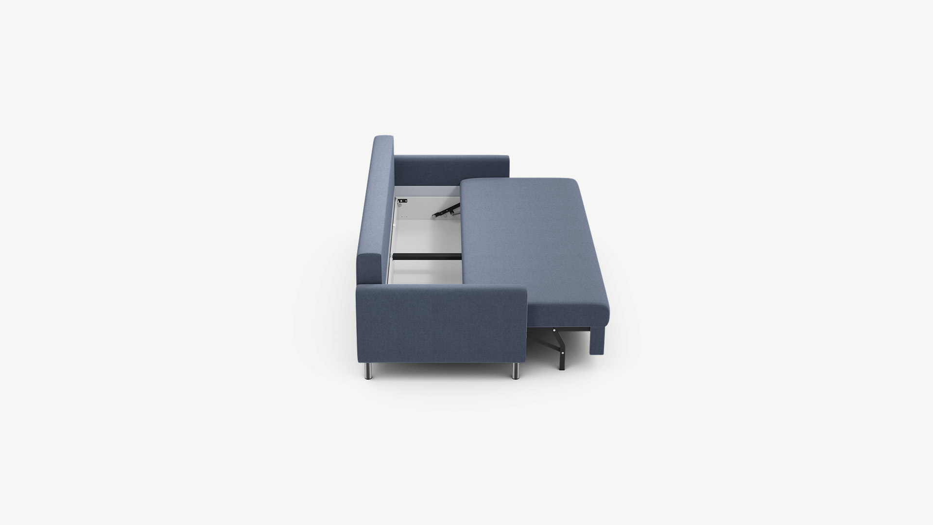 Механизм трансформации «Пантограф» подходит для ежедневного использования. Диван раскладывается и складывается, не повреждая напольное покрытие. Диван стоит на четырех опорах, в то время как дополнительные остаются скрытыми, появляясь плавно и бесшумно в единственно нужный момент — при трансформации дивана в кровать.