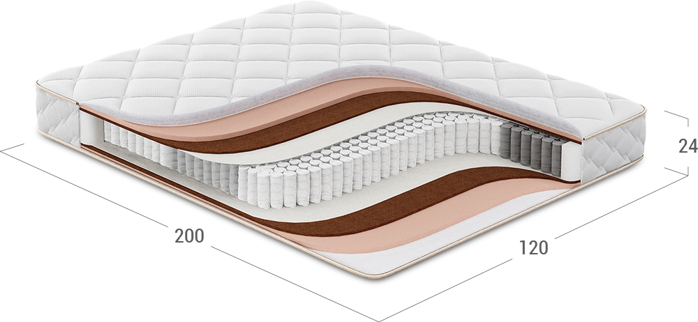 Значительно повышает жесткость спального места, обеспечивает равномерную поддержку тела во время сна. Полностью состоит из натуральных материалов. Добавляет прочности всей конструкции матраса.