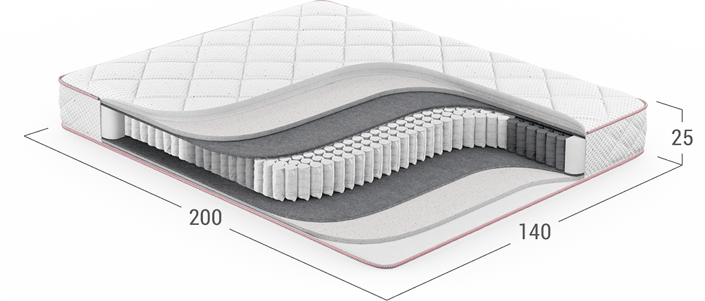 Матрас, в основу которого положен независимый пружинный блок (НПБ). Обратите внимание: чем большее количество пружин приходится на спальное место, тем точнее оказывается поддержка спины, а значит, более комфортным становится матрас и Ваш сон.