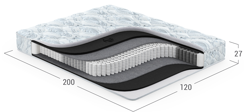 Повышает жесткость и плотность спального места, а также обеспечивает оптимальный воздухообмен благодаря объемной структуре материала. Улучшает эксплуатационные показатели матраса, не давая пружинному блоку механически воздействовать на комфортные слои.