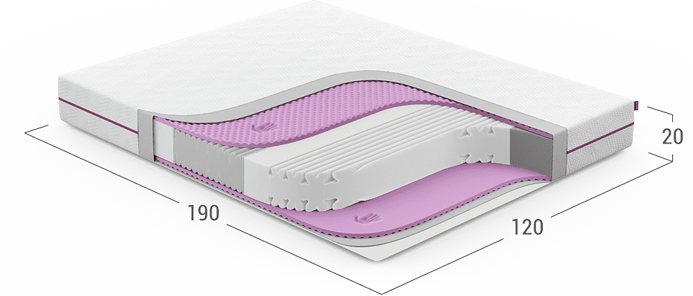 В этом матрасе для основы используется пенный материал PROFILEFOAM. Качество поддержки спины беспружинных матрасов зависит от эластичности пен. Чем выше эластичность, тем лучше поддержка спины.