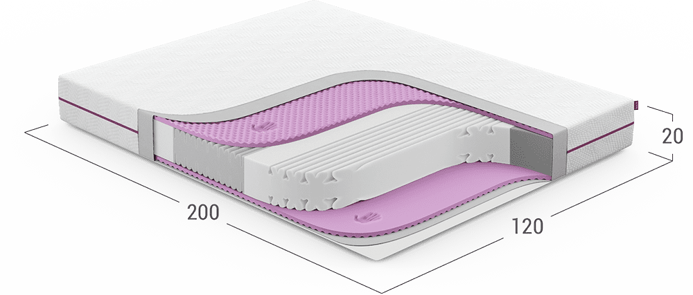 В этом матрасе для основы используется пенный материал PROFILEFOAM. Качество поддержки спины беспружинных матрасов зависит от эластичности пен. Чем выше эластичность, тем лучше поддержка спины.