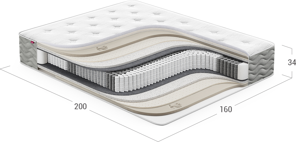 Матрас, в основу которого положен независимый пружинный блок (НПБ). Обратите внимание: чем большее количество пружин приходится на спальное место, тем точнее оказывается поддержка спины, а значит, более комфортным становится матрас и Ваш сон.