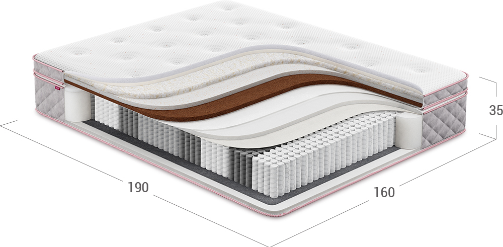 Надежно изолирует комфортные слои от соприкосновения с пружинным блоком и защищает материалы наполнения матраса от износа.