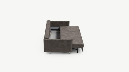 Механизм трансформации «Пантограф» подходит для ежедневного использования. Позволяет легко раскладывать и складывать диван, обеспечивая минимальный контакт дополнительных опор с напольным покрытием. Диван стоит на основных опорах, в то время как дополнительные остаются скрытыми, появляясь плавно и бесшумно в единственно нужный момент — при трансформации дивана в кровать.