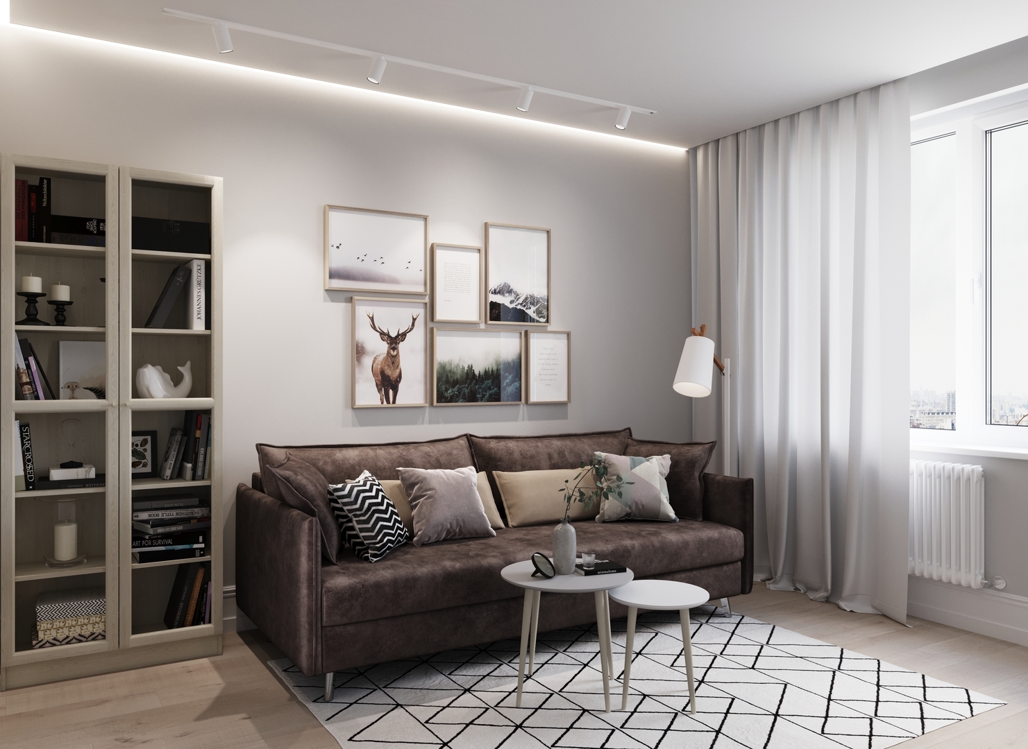 Спинка, выполненная в обивочной ткани, позволяет использовать диван для зонирования пространства.