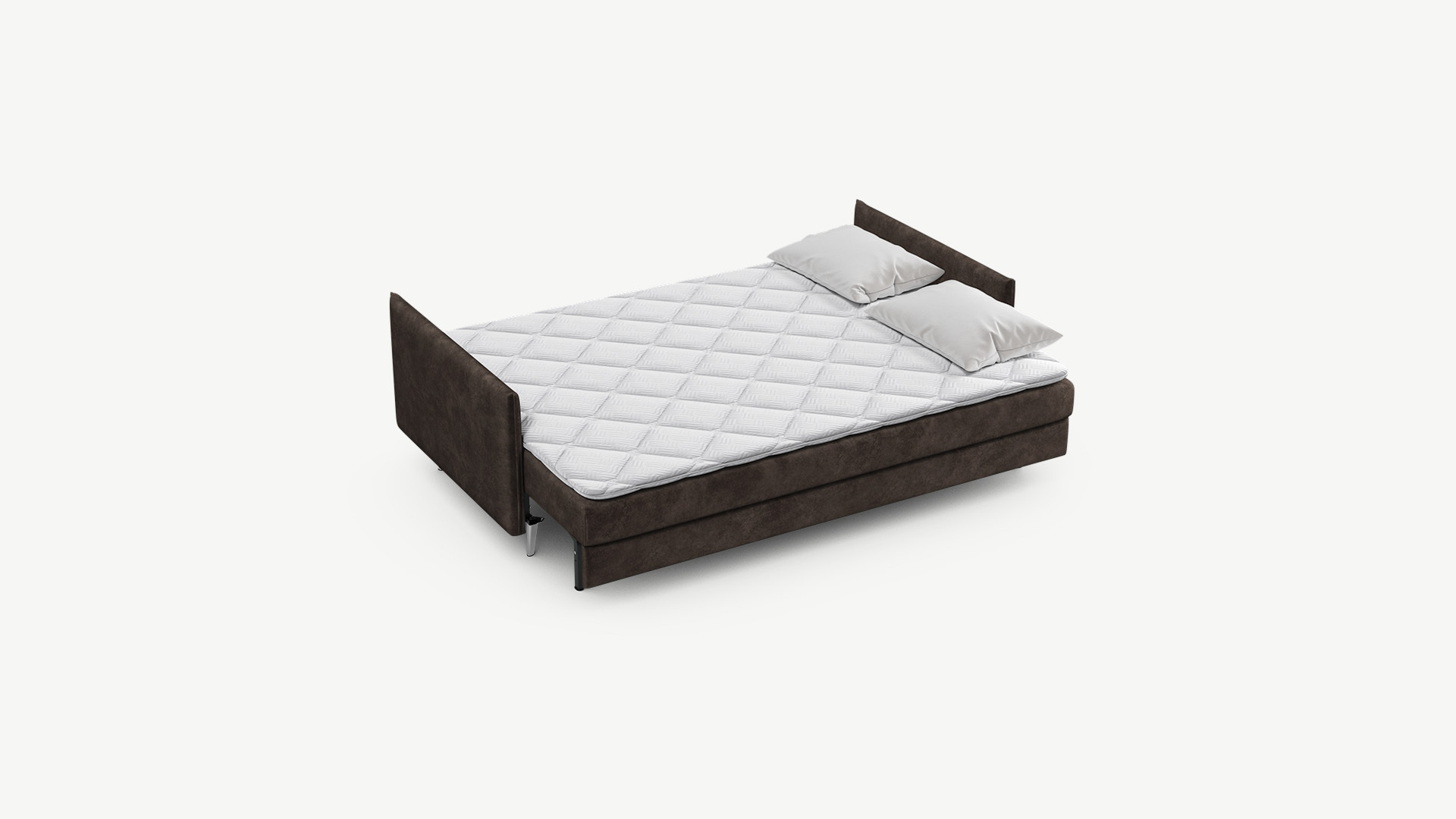 Механизм трансформации «Пантограф» подходит для ежедневного использования. Позволяет легко раскладывать и складывать диван, обеспечивая минимальный контакт дополнительных опор с напольным покрытием. Диван стоит на основных опорах, в то время как дополнительные остаются скрытыми, появляясь плавно и бесшумно в единственно нужный момент — при трансформации дивана в кровать.