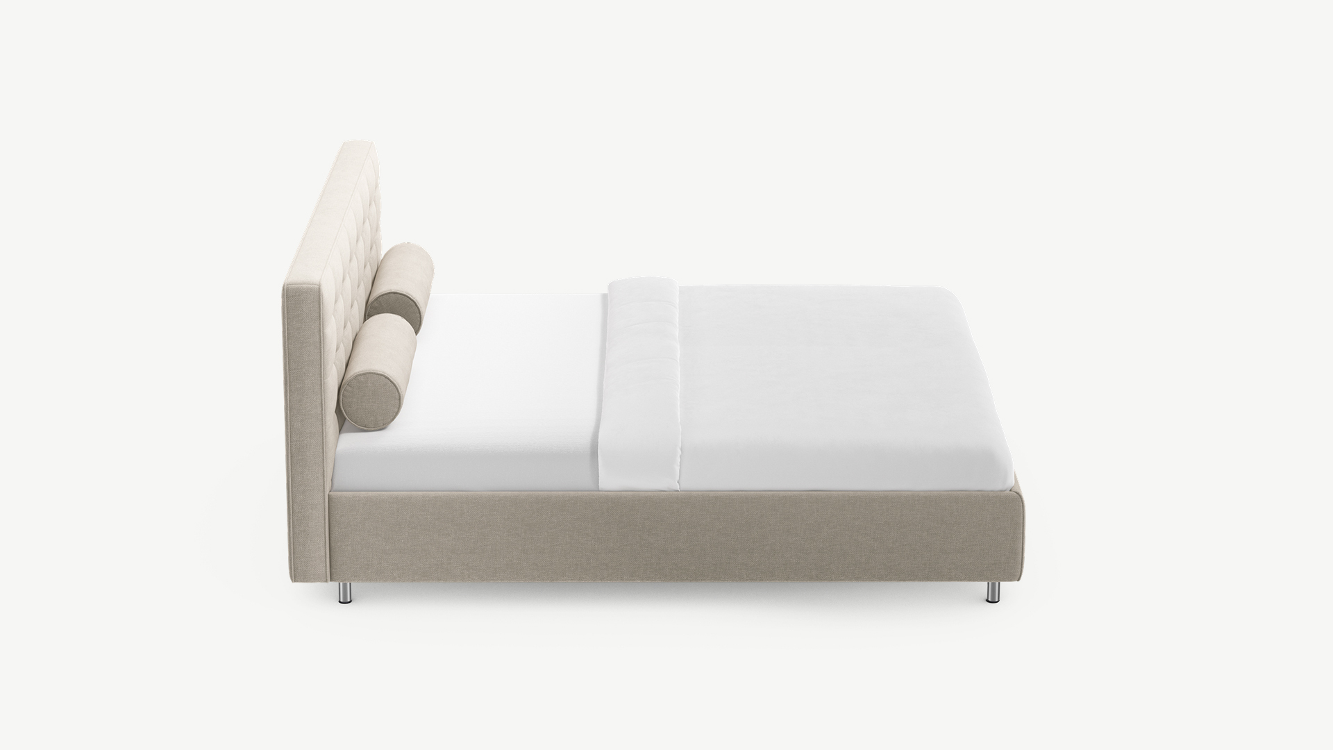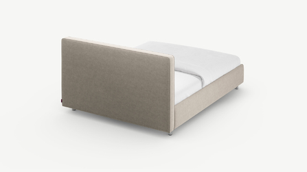 Обратная сторона изголовья, обитая тканью, позволяет ставить кровать в центре комнаты и зонировать пространство.