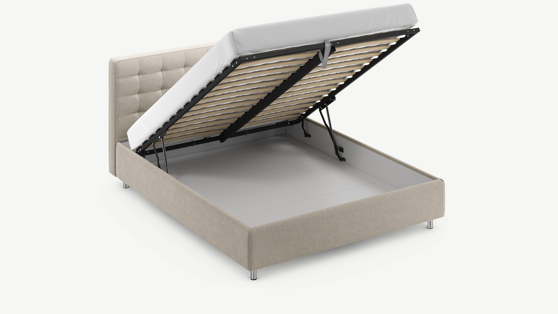 Регулируемый подъемный механизм с газовыми амортизаторами позволяет плавно и бесшумно поднимать и опускать спальное место.