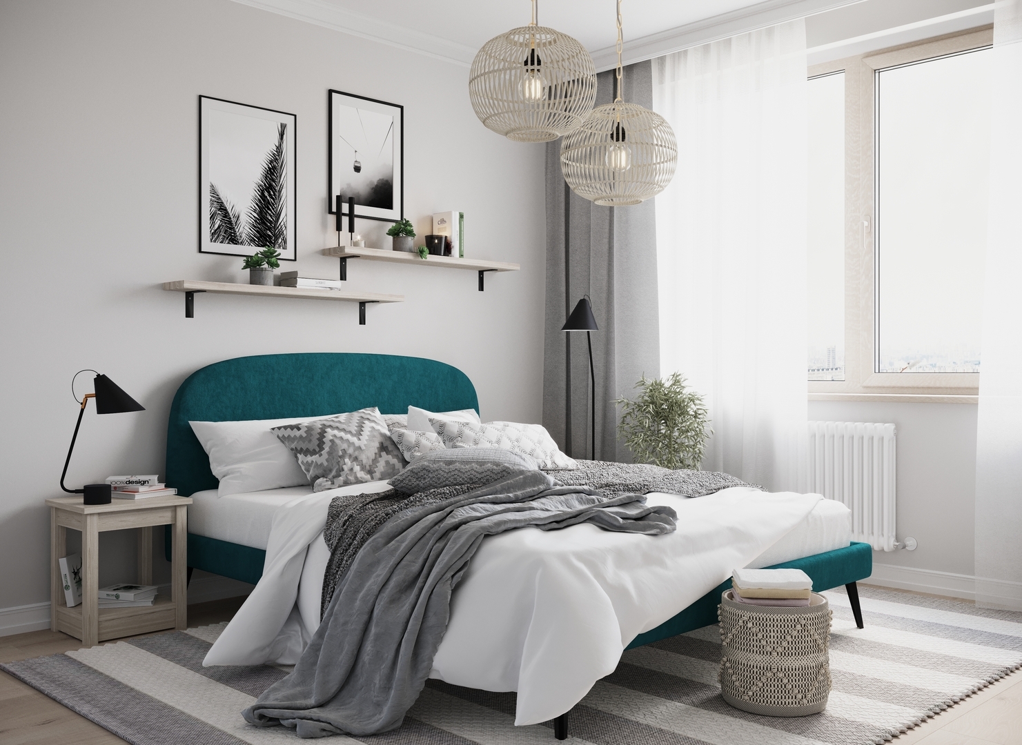 Создать гармоничный интерьер и завершить образ спальни помогут дополнительные аксессуары, например: тумбы, банкетки, подушки.
