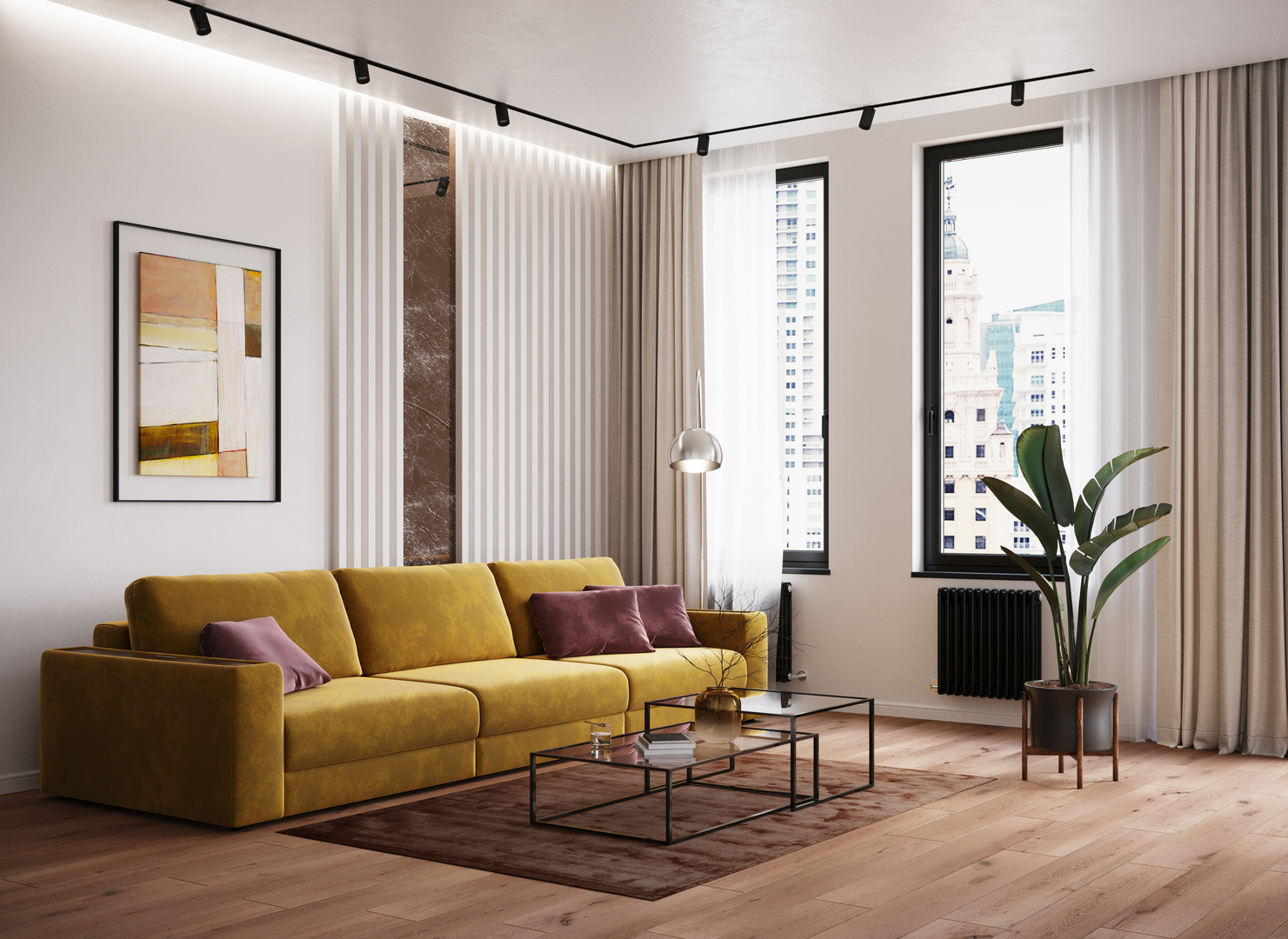 Дизайн MOON 007 — это современный стиль, актуальный для большинства интерьерных решений. Так, светлая цветовая палитра не только впишет диван в популярный сегодня стиль «Сканди», но и визуально разгрузит пространство. Использование насыщенной темной палитры усилит звучание стиля «Лофт». Для интерьера, созданного в cовременном стиле, палитра максимально широка: Вы можете выбрать практически любой понравившийся Вам цвет.