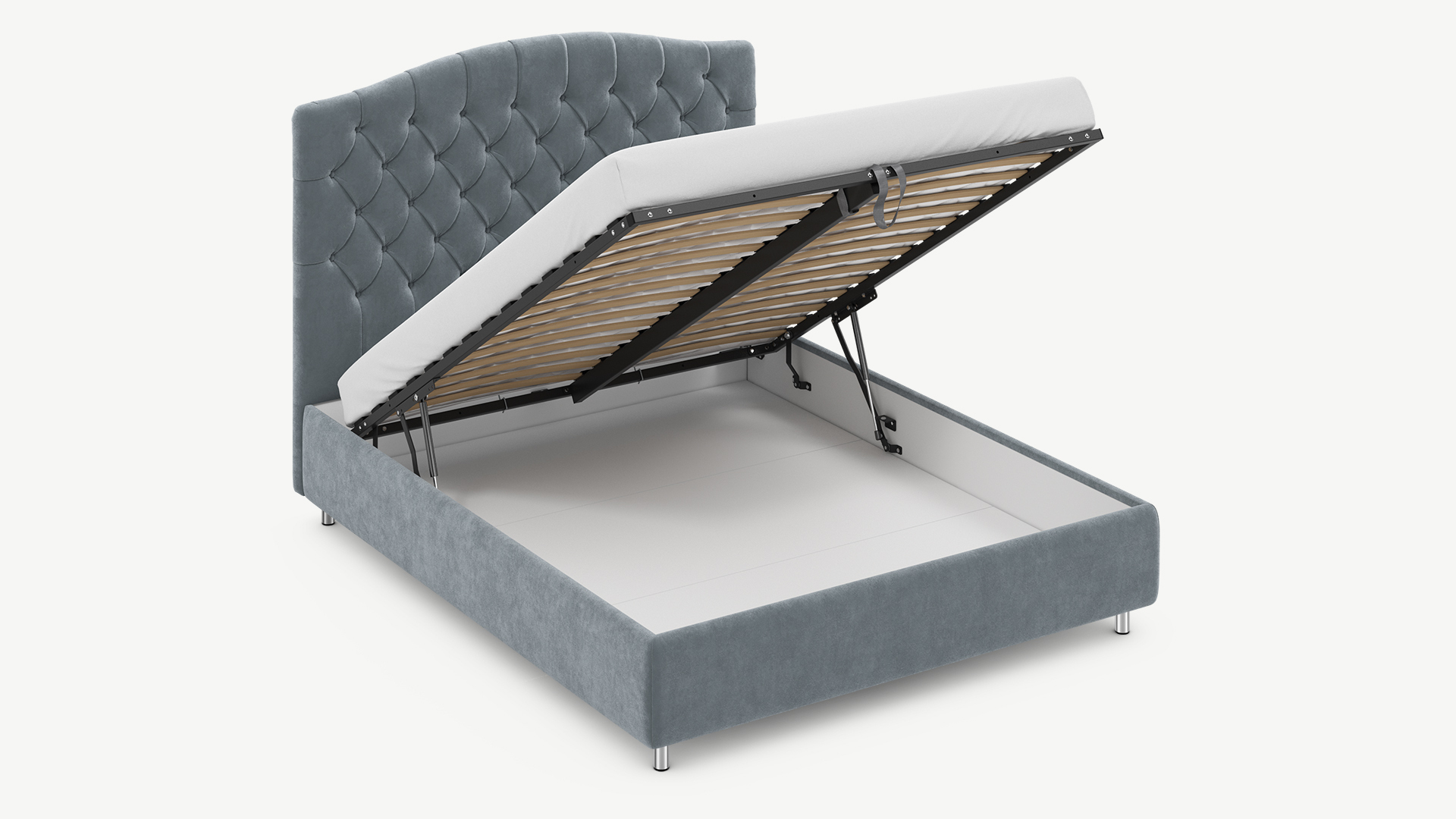 - Скрытая под основанием вместительная емкость без внутренних перегородок позволяет использовать всю площадь подкроватного пространства для хранения вещей.