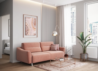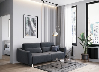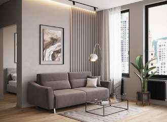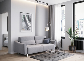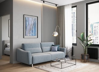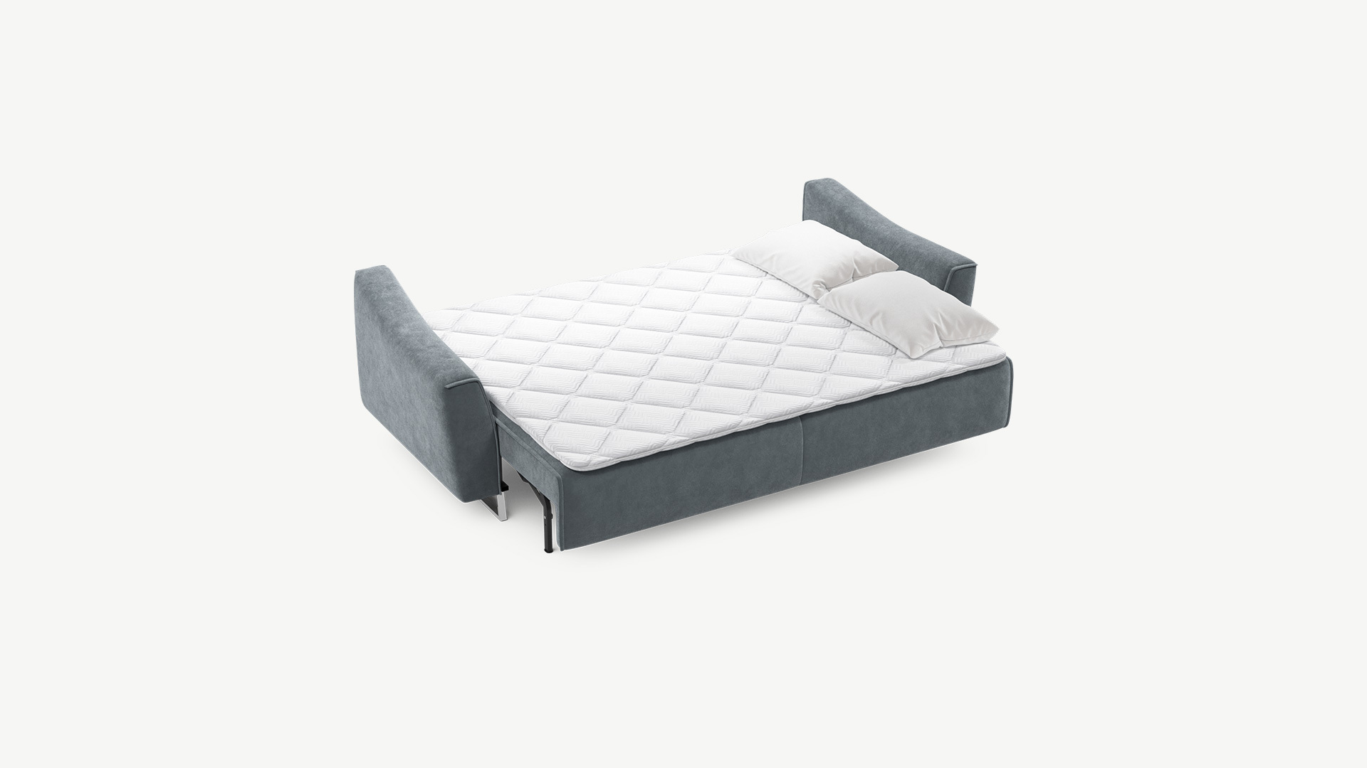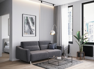 Механизм трансформации «Пантограф» подходит для ежедневного использования. Позволяет легко раскладывать и складывать диван, обеспечивая минимальный контакт дополнительных опор с напольным покрытием. Диван стоит на трапециевидных опорах, в то время как дополнительные остаются скрытыми, появляясь плавно и бесшумно в единственно нужный момент — при трансформации дивана в кровать.