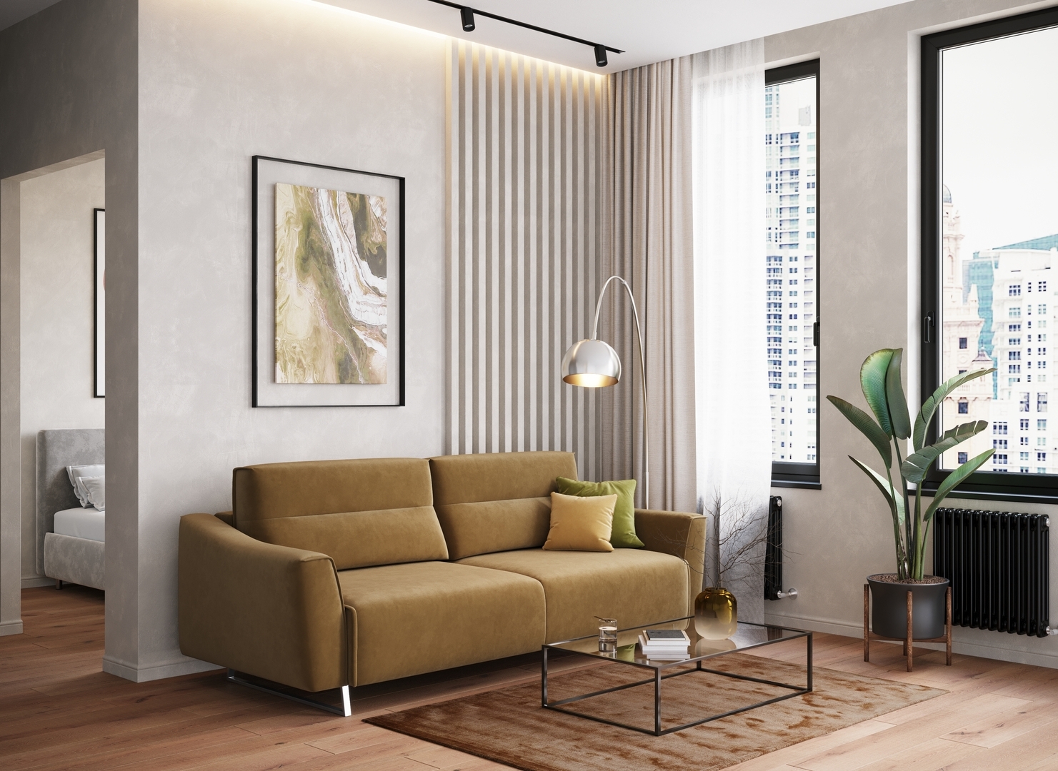 Благодаря высоким трапециевидным опорам под диваном проходит робот-пылесос и легко проводится влажная уборка, что поможет обеспечить чистоту и порядок в доме.