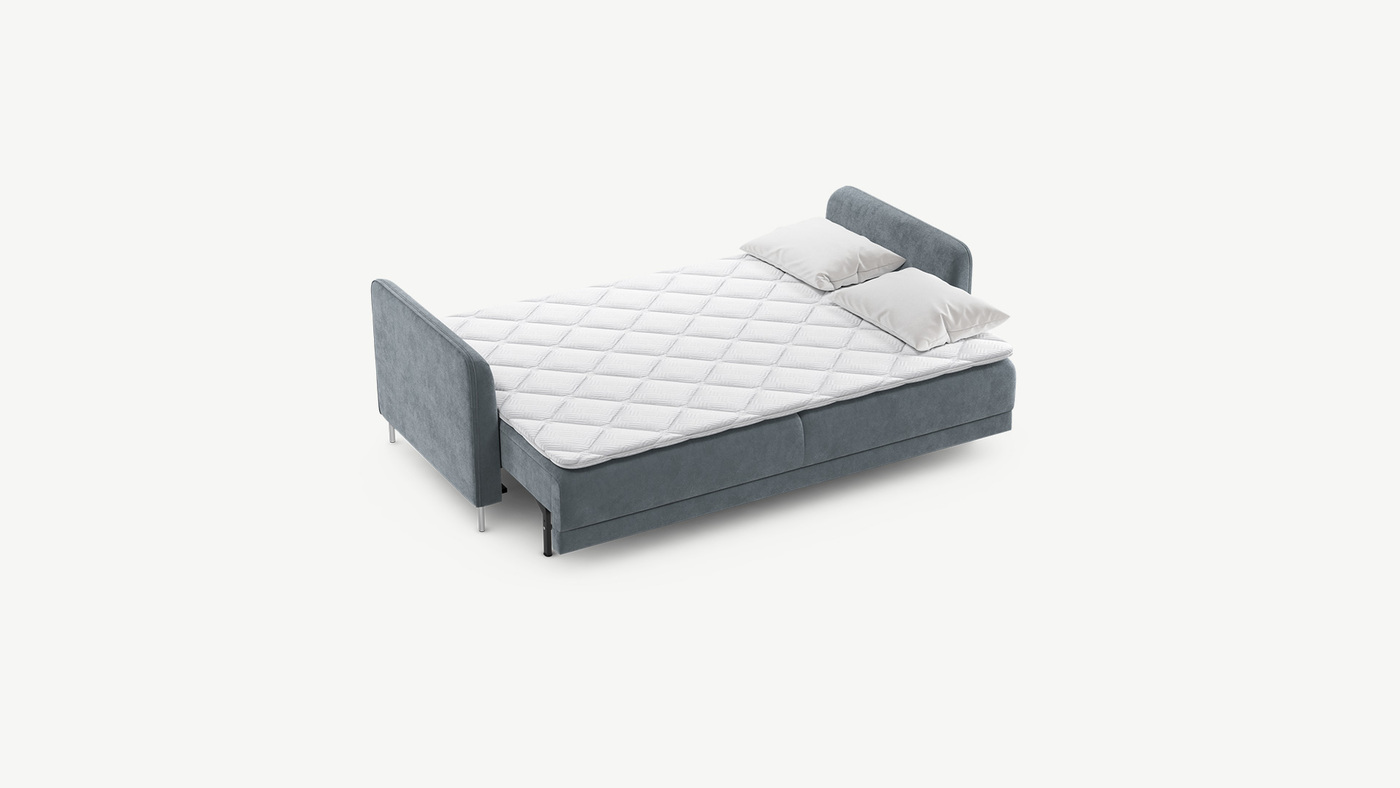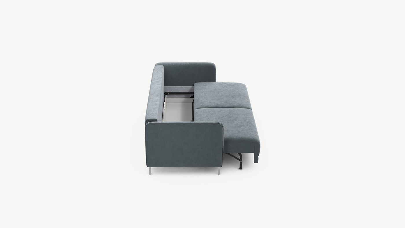 Механизм трансформации «Пантограф» подходит для ежедневного использования. Диван легко раскладывается и складывается, не повреждая напольное покрытие. Диван стоит на четырех основных опорах, в то время как дополнительные остаются скрытыми, появляясь плавно и бесшумно в единственно нужный момент — при трансформации дивана в кровать.