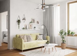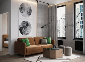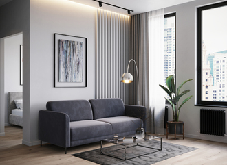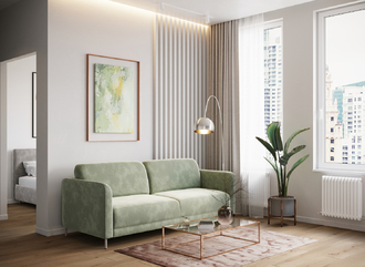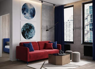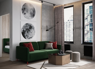 Наши дизайнеры рекомендуют присмотреться к велюрам. Мягкая, тактильно приятная ткань идеально очертит контуры дивана.