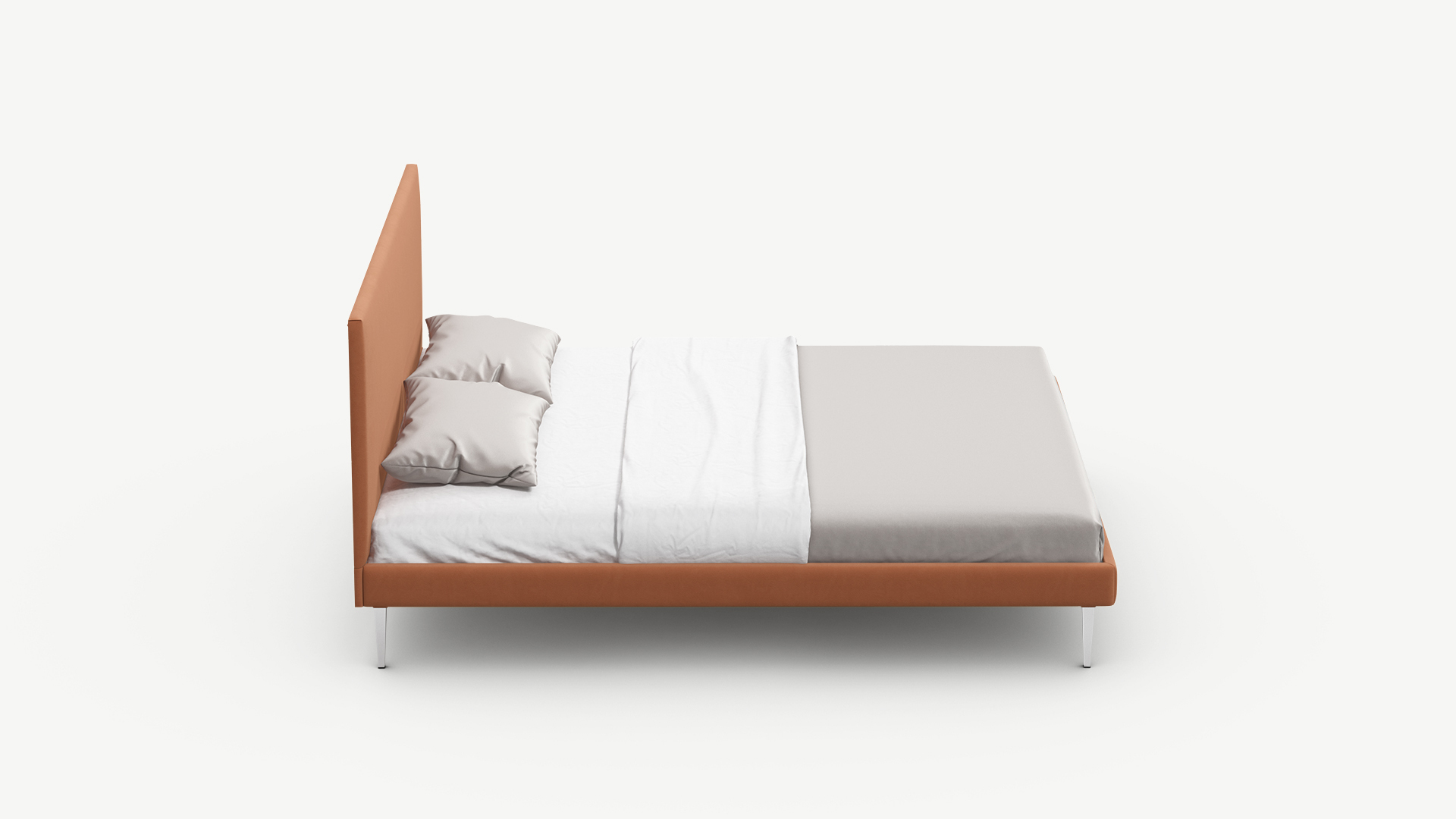 КроватьКровать MOON FAMILY 1256 демонстрирует безупречный баланс изящных пропорций. Лаконичное изголовье, узкие царги и высокие опоры создают эффектный образ, привносящий в пространство спальни стильный и яркий акцент.