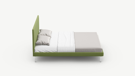 Кровать MOON FAMILY 1256 демонстрирует безупречный баланс изящных пропорций. Лаконичное изголовье, узкие царги и высокие опоры создают эффектный образ, привносящий в пространство спальни стильный и яркий акцент.