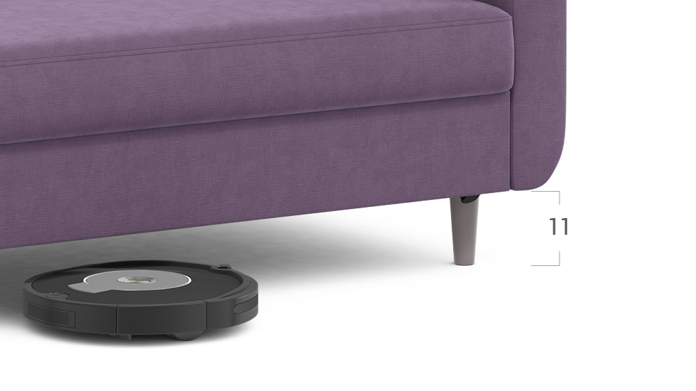 Благодаря высоким конусовидным опорам под диваном проходит робот-пылесос и легко проводится влажная уборка, что обеспечивает чистоту и порядок в доме. Цвет опор подбирается дизайнерами с учетом фактуры и цвета обивочного материала, а также последних модных тенденций.
