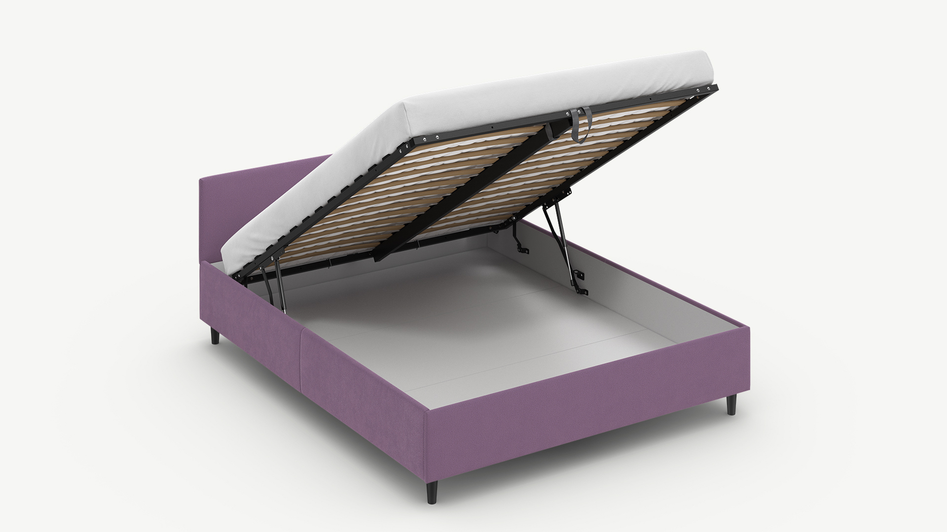 - Скрытая под основанием вместительная емкость без внутренних перегородок позволяет использовать всю площадь подкроватного пространства для хранения вещей.