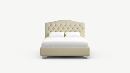 Кровать MOON 1157 создает ощущение праздника. Фигурное изголовье с классической каретной стяжкой формирует торжественный образ кровати, привнося в интерьер элементы дворцового стиля и роскоши.
