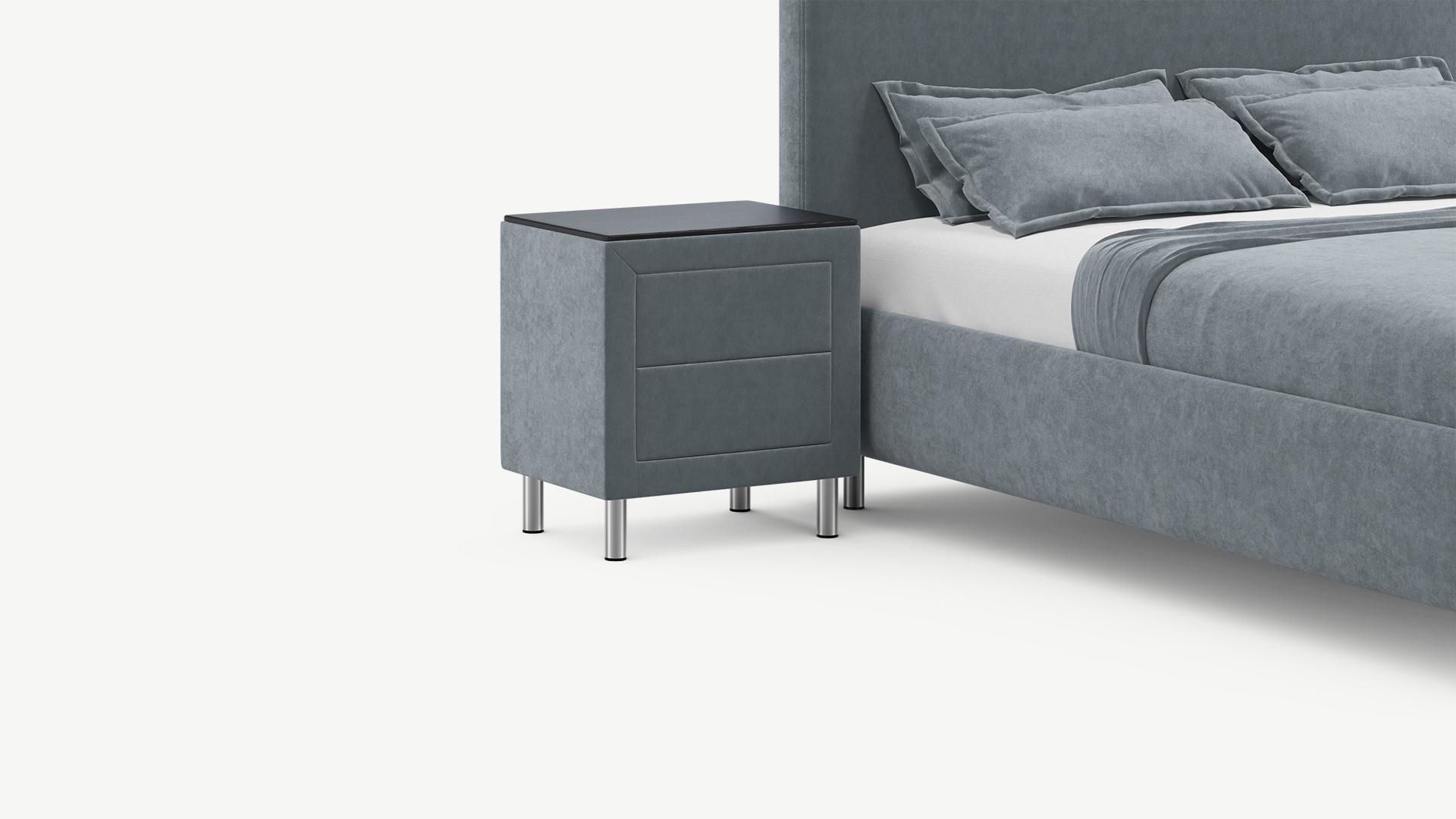 Мягкий притягательный шарм тумбы MOON 1010 — результат сразу нескольких удачных решений. Обитая тактильно приятной мебельной тканью, она деликатно поддерживает настроение спальни, создавая атмосферу гармонии и уюта. Современная система доступа к содержимому Push-to-open позволяет открывать ящик легким нажатием на панель — Вы получаете стильный, абсолютно лаконичный Дизайн, реализованный благодаря отсутствию традиционных ручек!