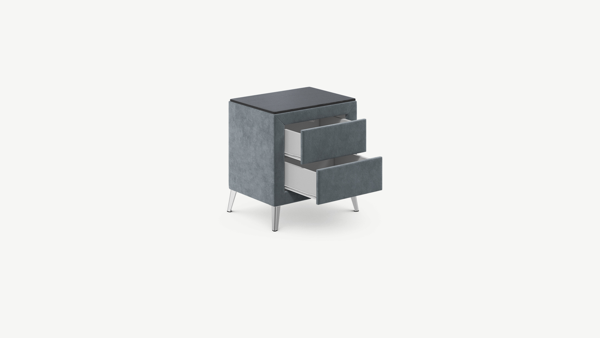 Мягкий притягательный шарм тумбы MOON 1010 — результат сразу нескольких удачных решений. Обитая тактильно приятной мебельной тканью, она деликатно поддерживает настроение спальни, создавая атмосферу гармонии и уюта. Современная система доступа к содержимому Push-to-open позволяет открывать ящик легким нажатием на панель — Вы получаете стильный, абсолютно лаконичный Дизайн, реализованный благодаря отсутствию традиционных ручек!