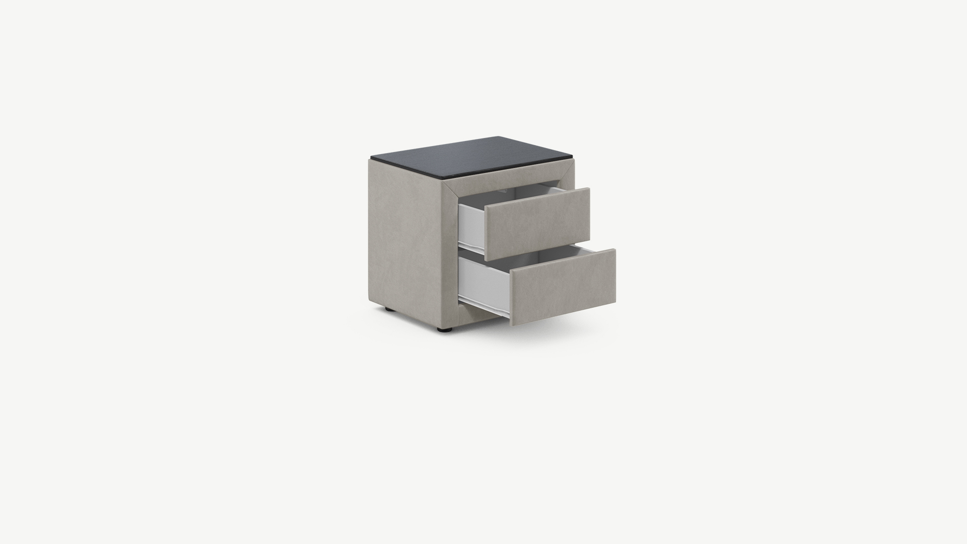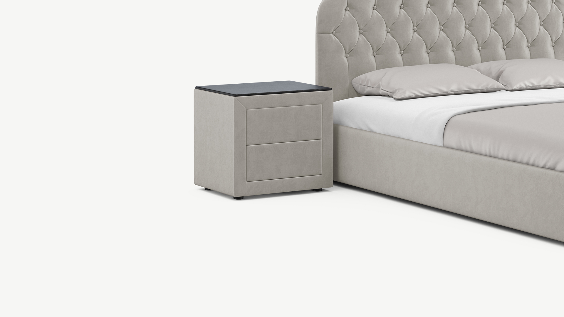 Тумба прикроватнаяМягкий притягательный шарм тумбы MOON FAMILY 1010 — результат сразу нескольких удачных решений. Обитая тактильно приятной мебельной тканью, она деликатно поддерживает настроение спальни, создавая атмосферу гармонии и уюта. Современная система доступа к содержимому Push-to-open позволяет открывать ящик легким нажатием на панель — Вы получаете стильный, абсолютно лаконичный Дизайн, реализованный благодаря отсутствию традиционных ручек!