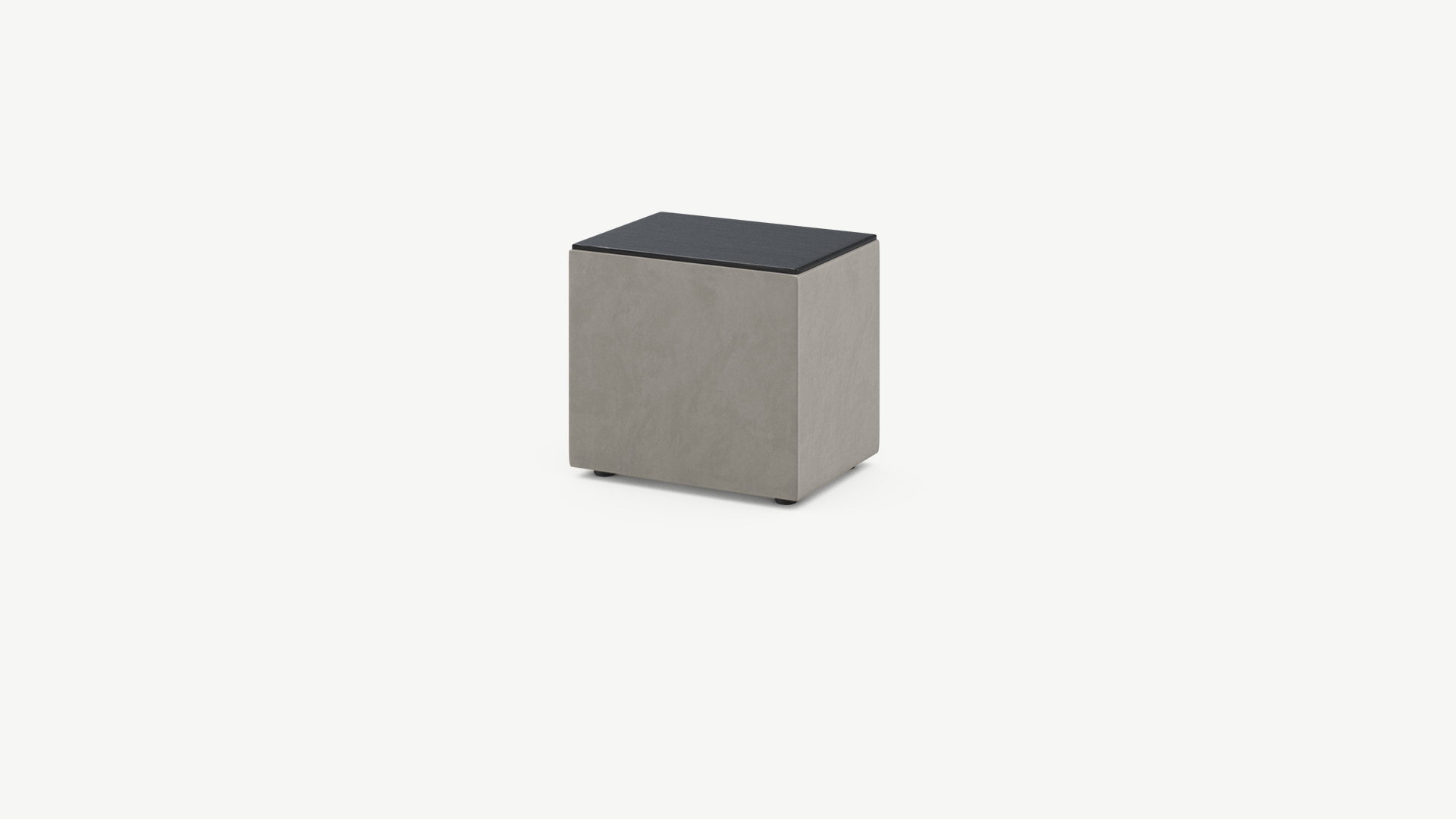 Обратная сторона тумбы, выполненная в обивочной ткани, позволяет ставить ее в центре комнаты и зонировать пространство.